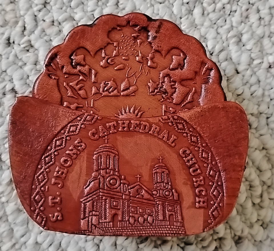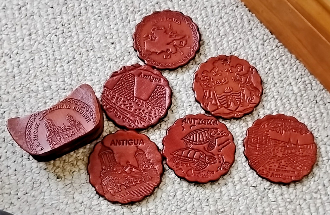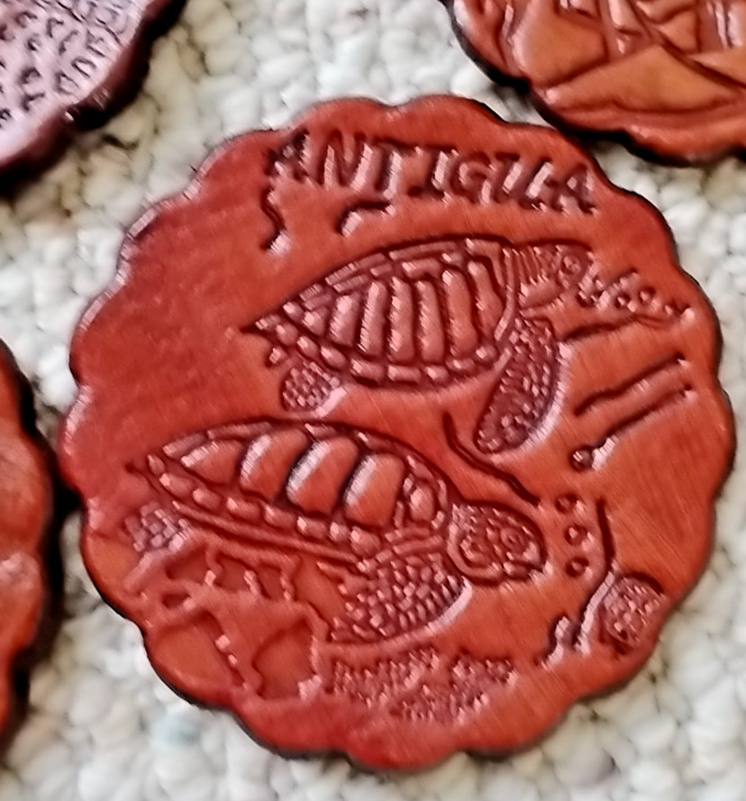 Vintage Antigua Coasters, Set of 6, Real Leather Coasters w/Holder. Retro