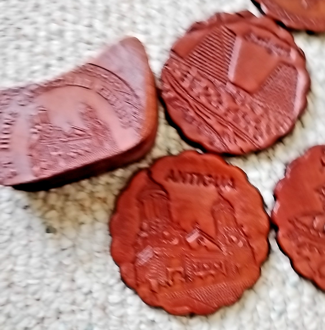 как выглядит Vintage Antigua Coasters, Set of 6, Real Leather Coasters w/Holder. Retro фото