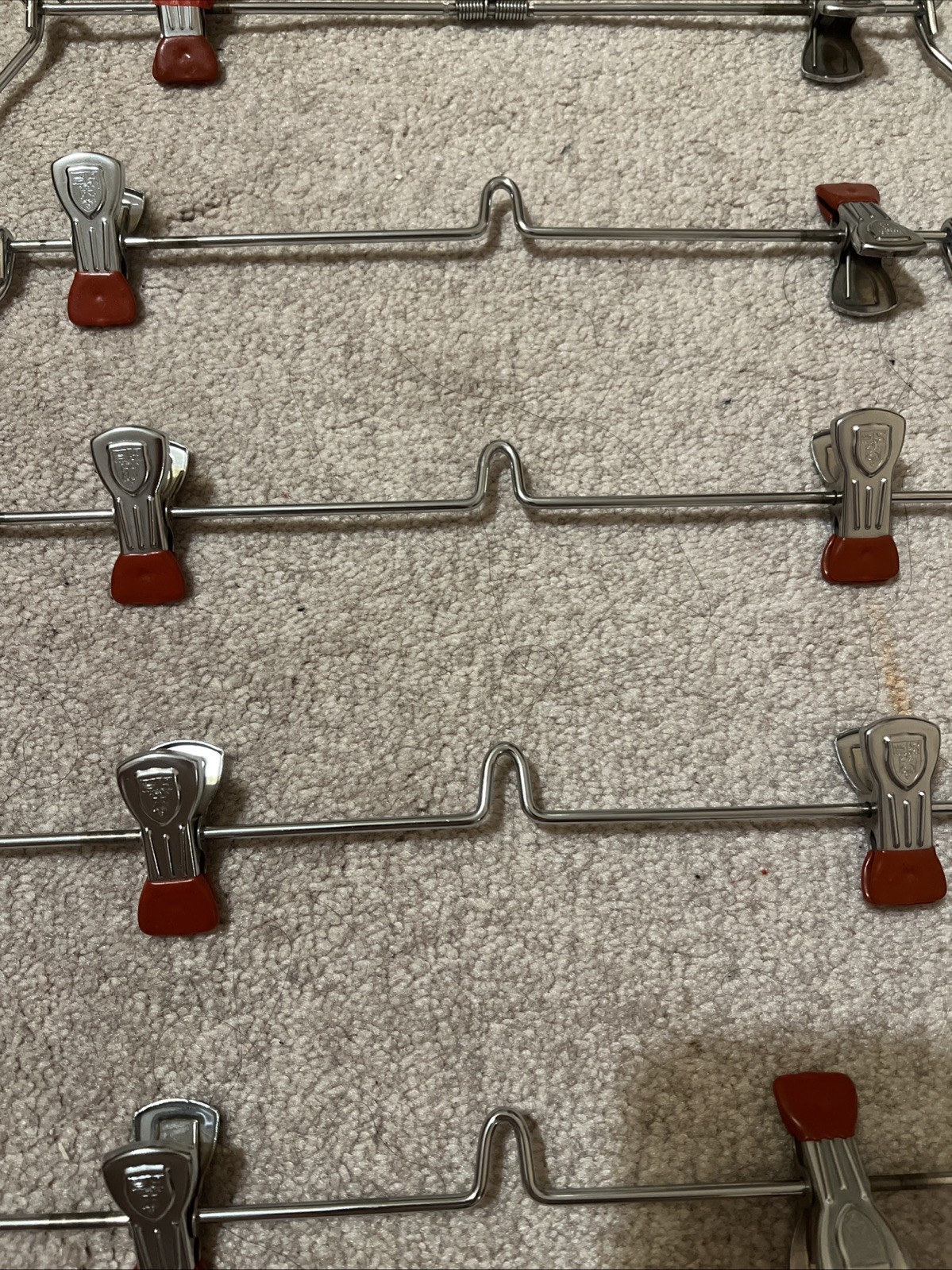 как выглядит Vintage Metal Hangar with 6 Levels Metal Clips with Red Rubber Ends Adjustable фото