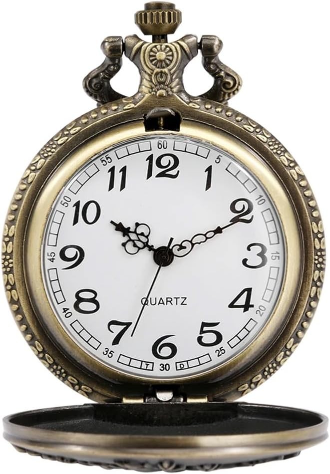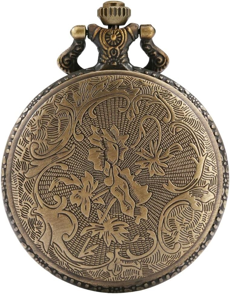Vintage Quartz Pocket Watches for Men with Chains Pendant Roses Pattern