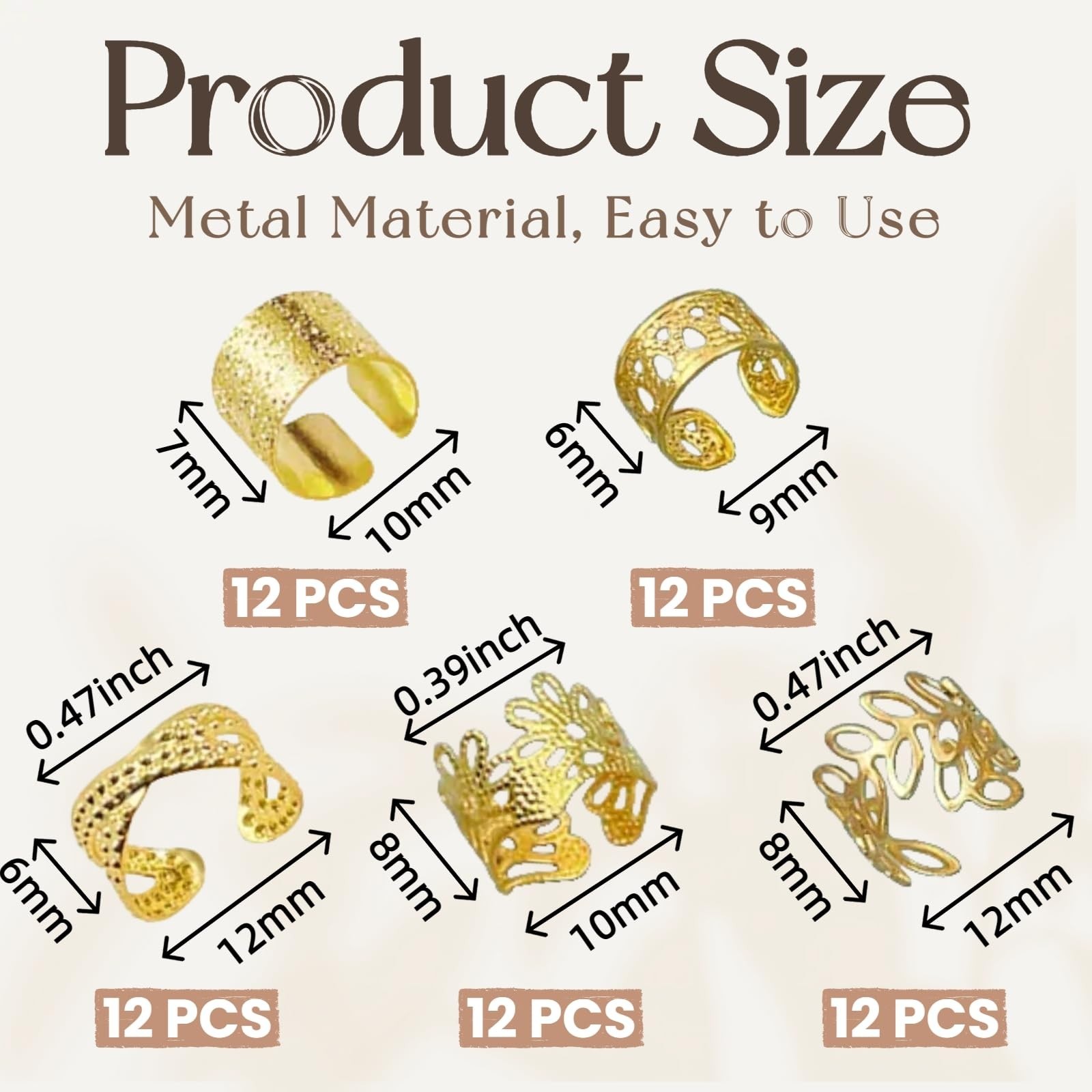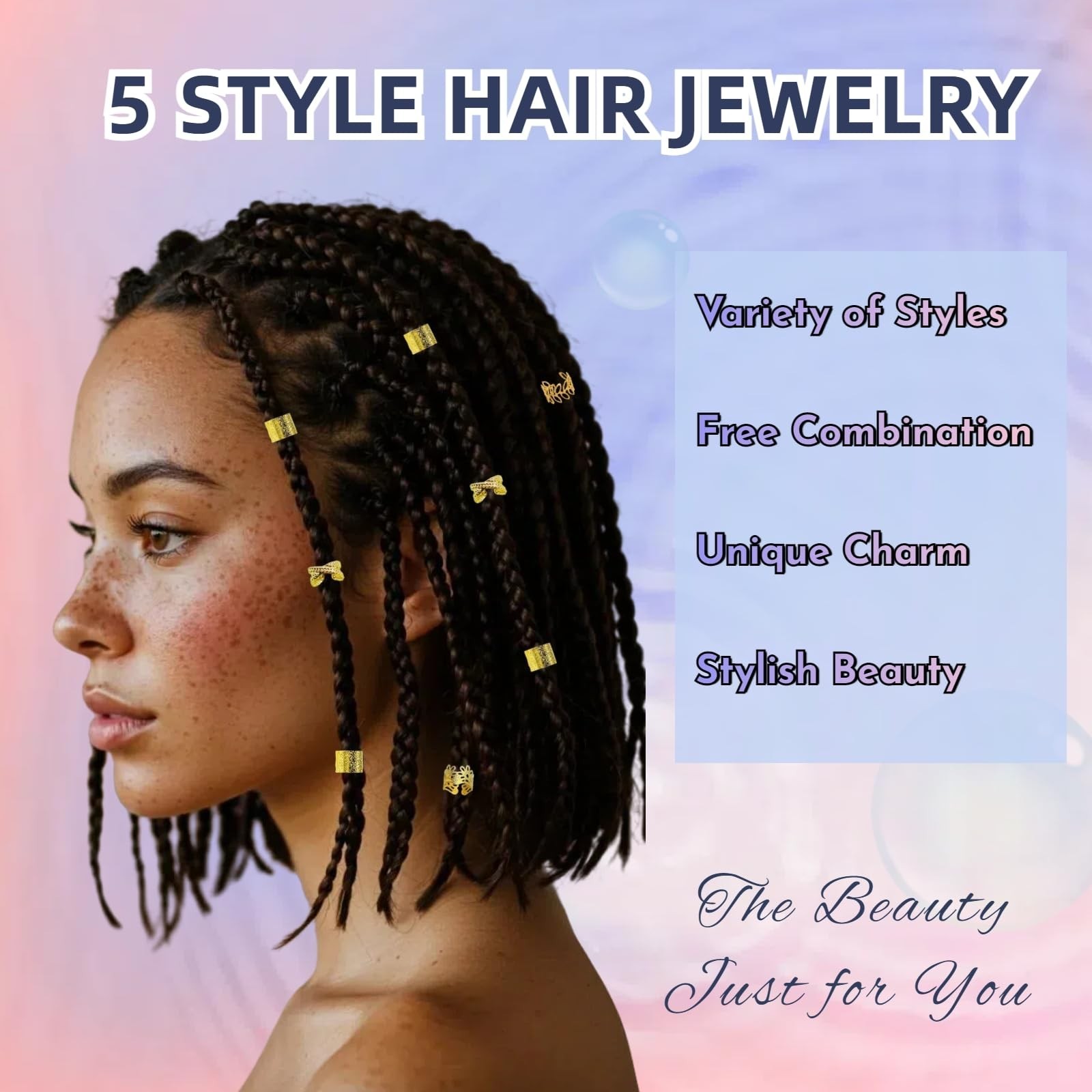 60 Pcs Gold Hair Jewelry Kit for Braids and Dreadlocks, 5 Styles Metal Hair C...
