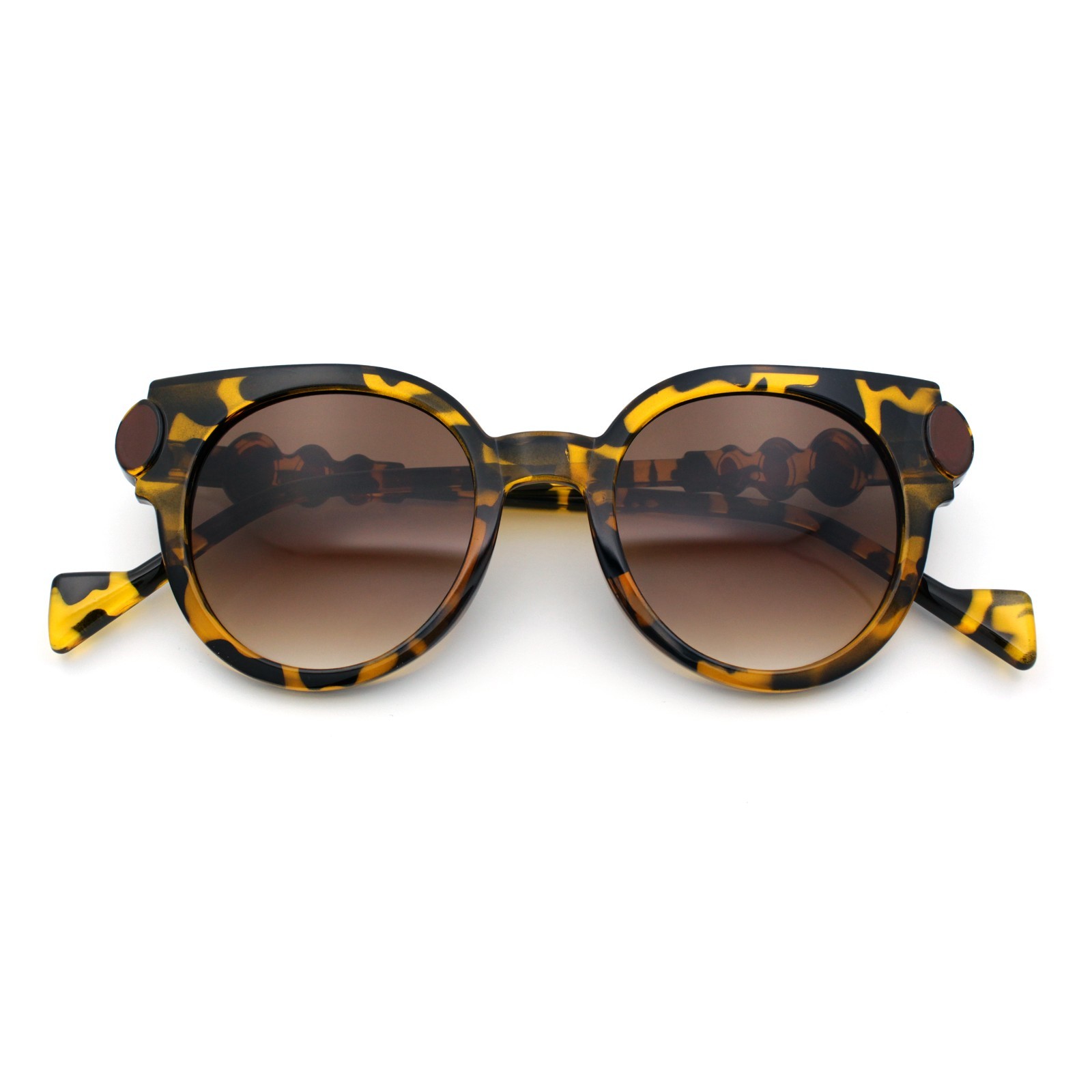 Womens Ornate Fancy Thick Mod Plastic Round Horn Fashion Sunglasses