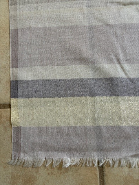 NWOT Silk Blend Scarf, Ivory, Gray, Pale Gold Stripes, 29 x 80, Subtle Beauty