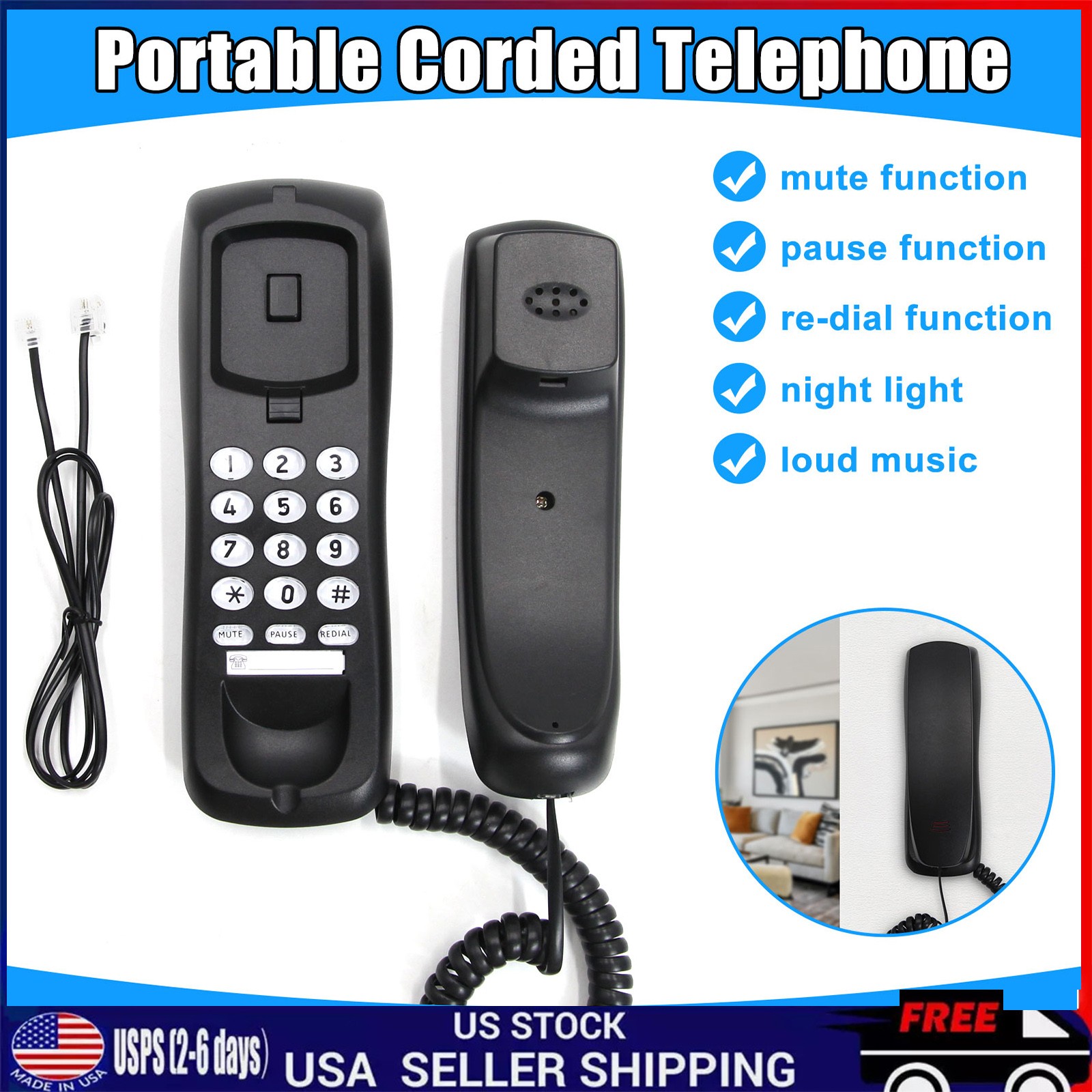 Black Corded Telephone Landline Phone for Home Office Desk Wall Mountable New