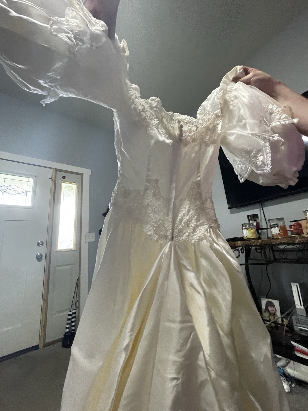 как выглядит Vintage 1983 Wedding Dress 7/8 Off Shoulder Princess Sleeves Preserved In Box фото