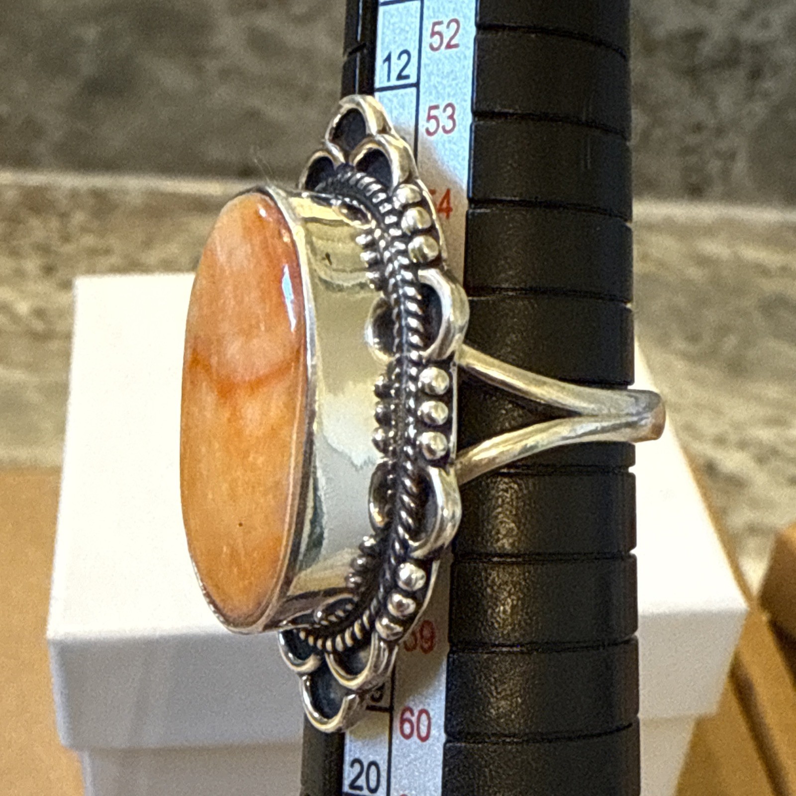 Southwestern Handmade ORANGE SPINY OYSTER Ring 925 Sterling Silver Size 7.5-8