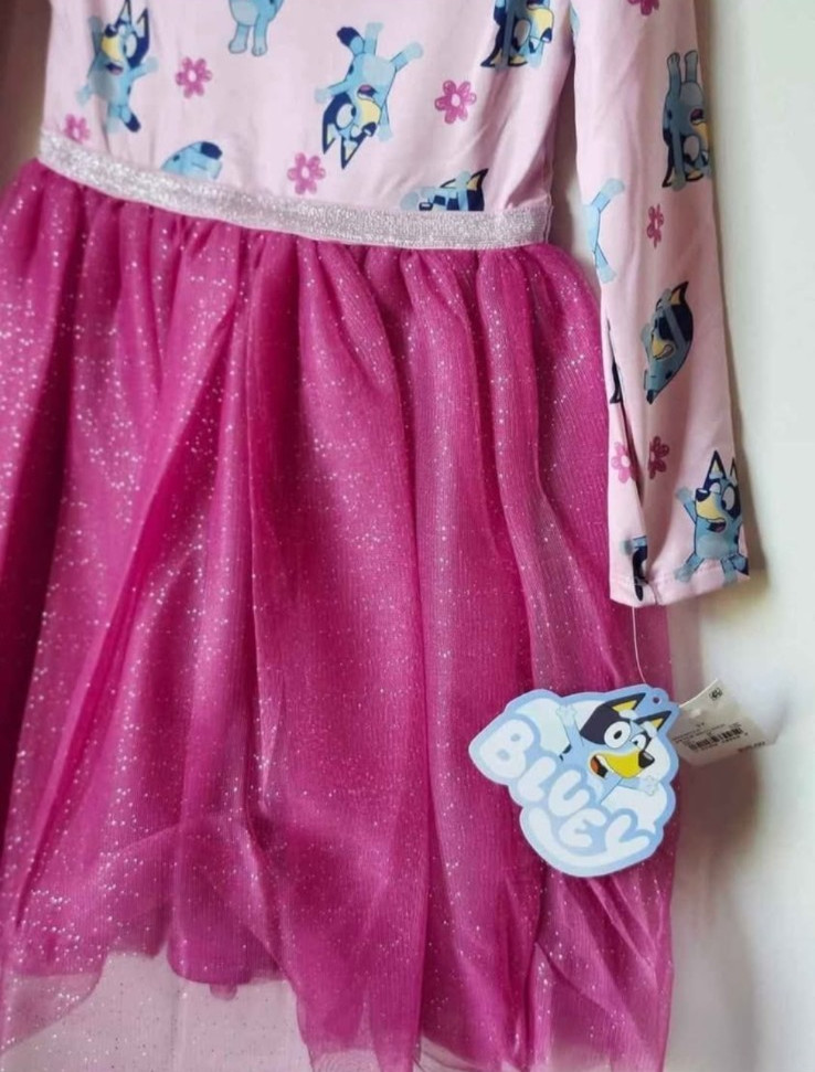 как выглядит Bluey Girls Dress  Long Sleeve Pink Top with Tulle Skirt фото