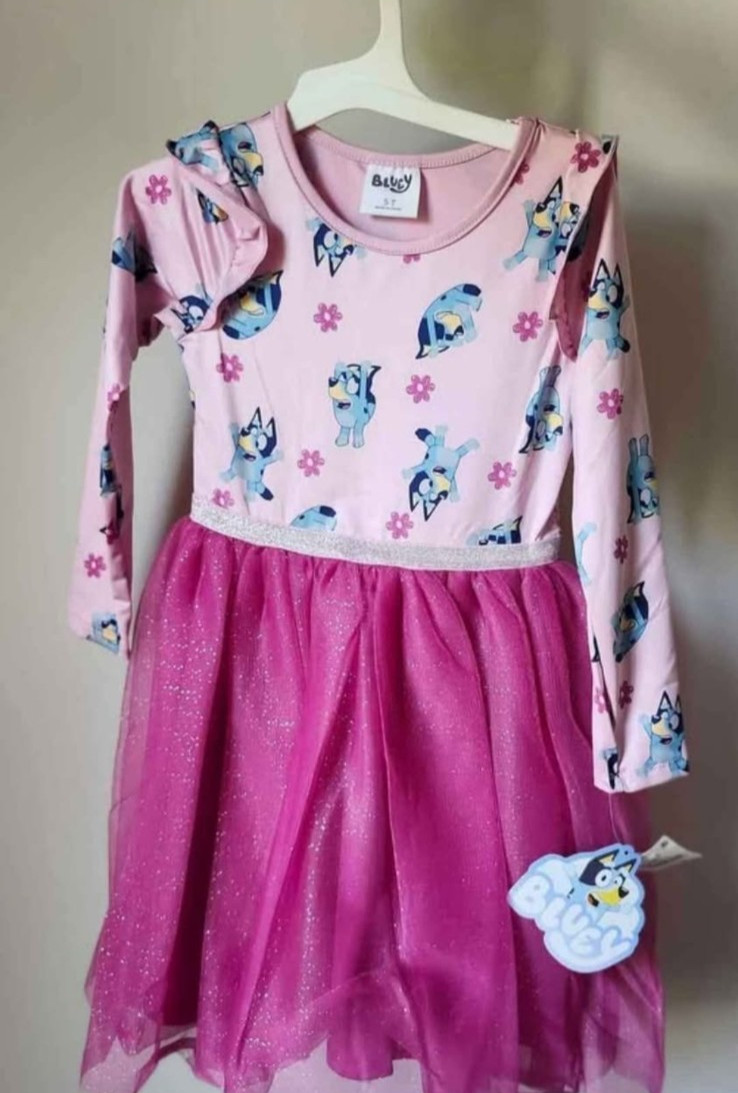 Bluey Girls Dress Long Sleeve Pink Top with Tulle Skirt