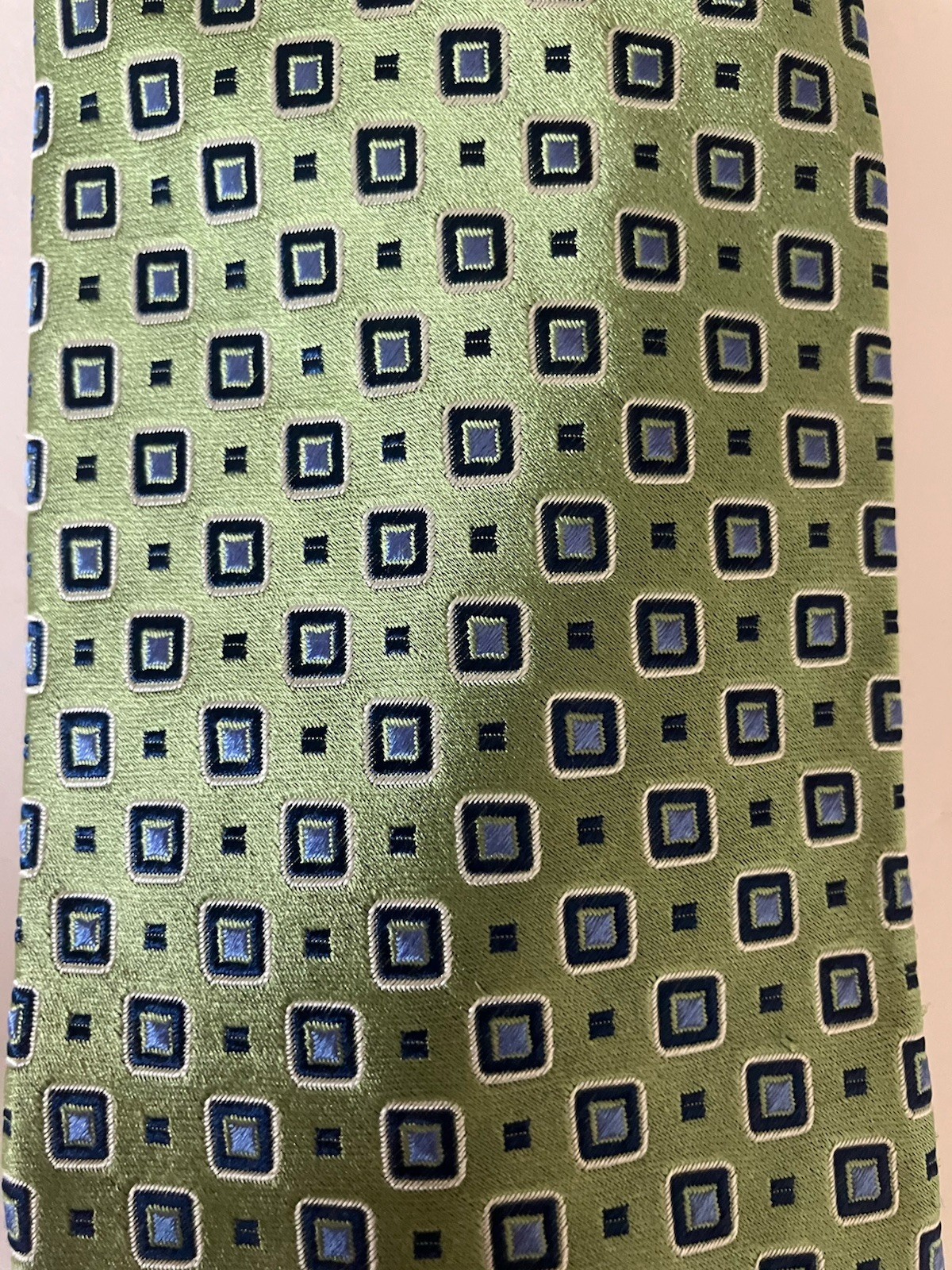 Stafford Men's Necktie Tie Silk Green Blue Squares Diamonds 58