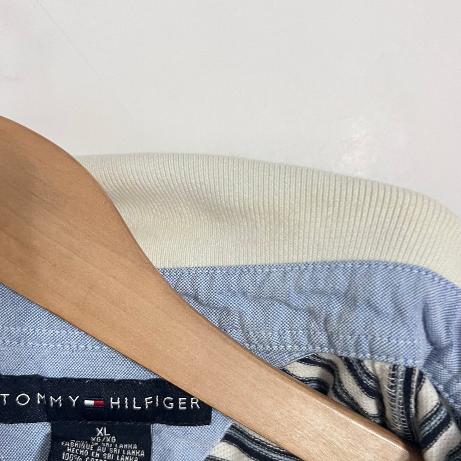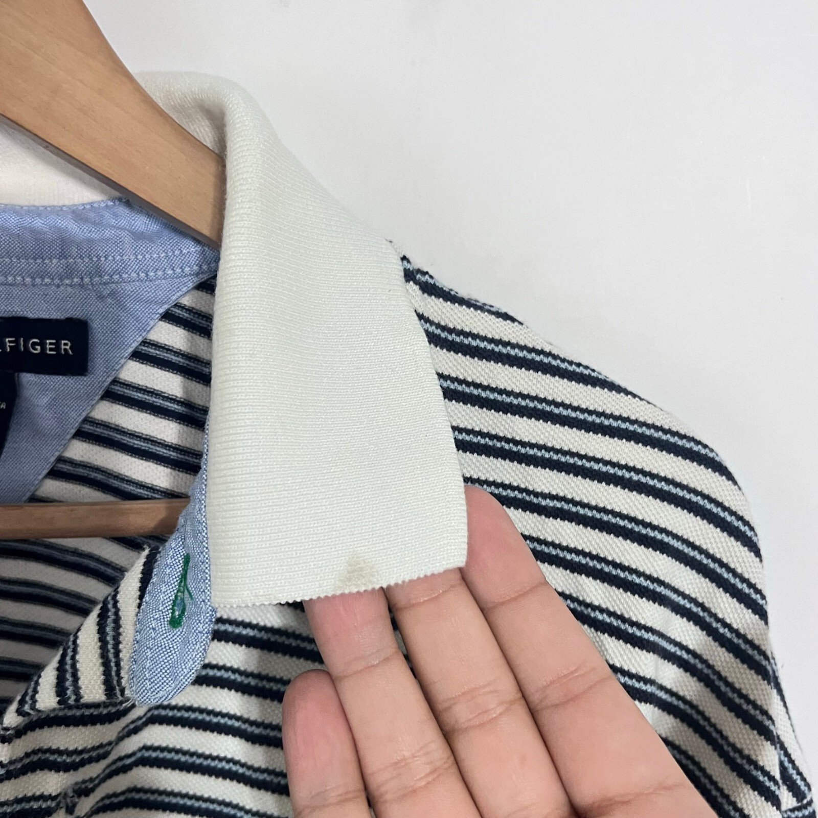 Tommy Hilfiger Mens Polo Shirt Size XL White Multicolor Striped Embroidered