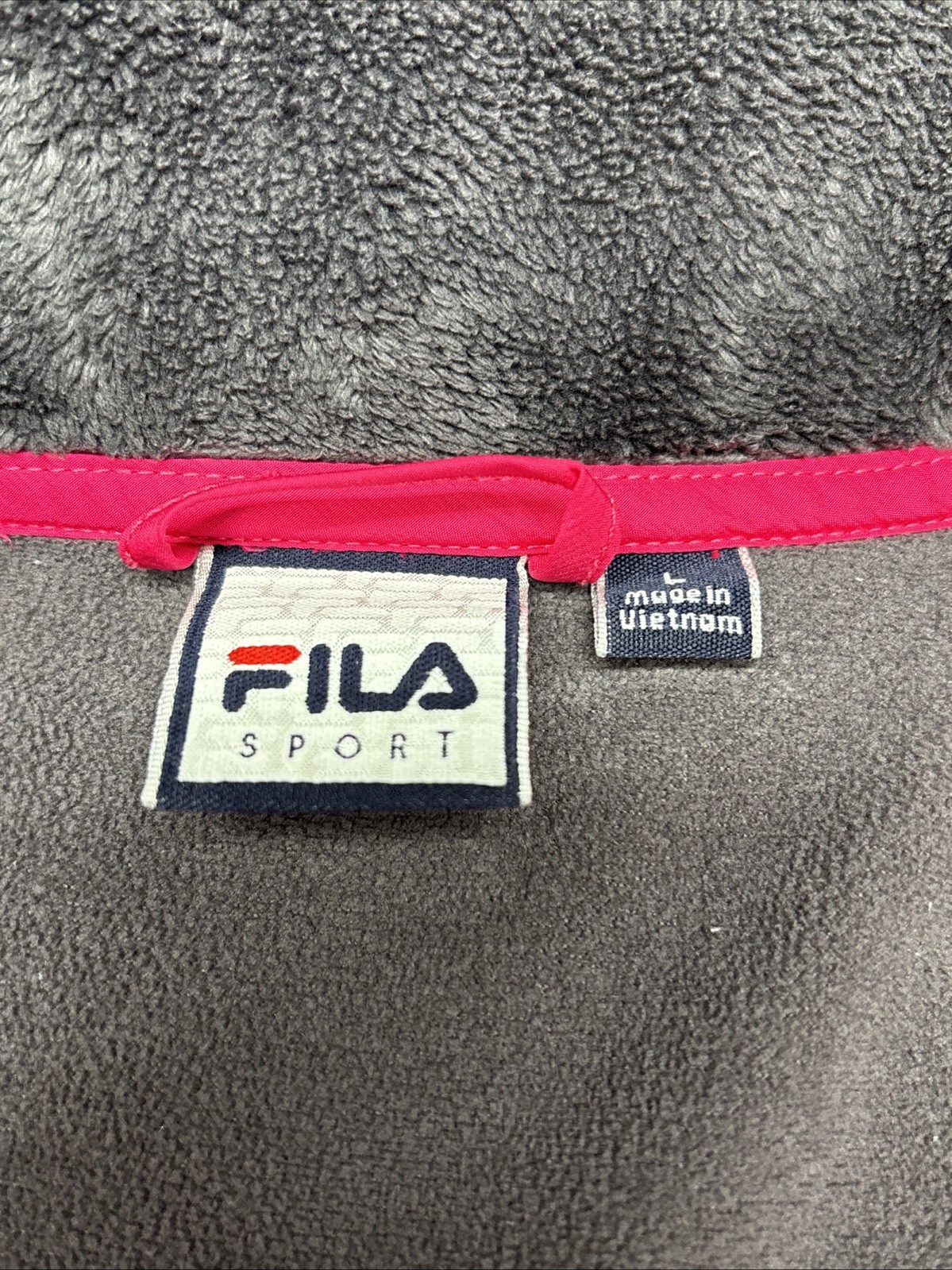 FILA Size Large Women s Pink/gray Full Zip Stand Collar Hi-Pile Athletic Jacket