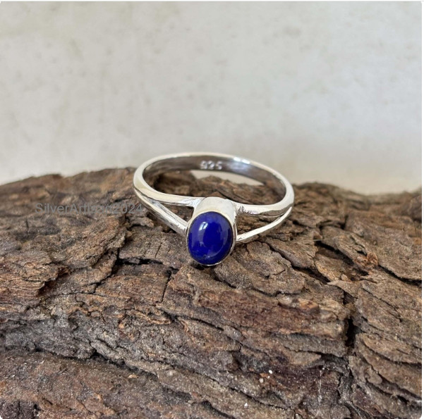 Handmade Lapis Lazuli Ring: 925 Sterling Silver Boho Ring All Size