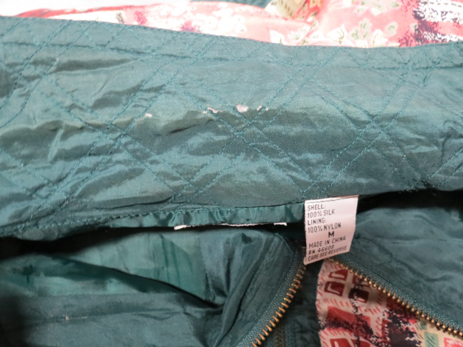 80s 90s Vintage 100 Silk Track Suit Jacket Pants Set Medium Green Floral - READ