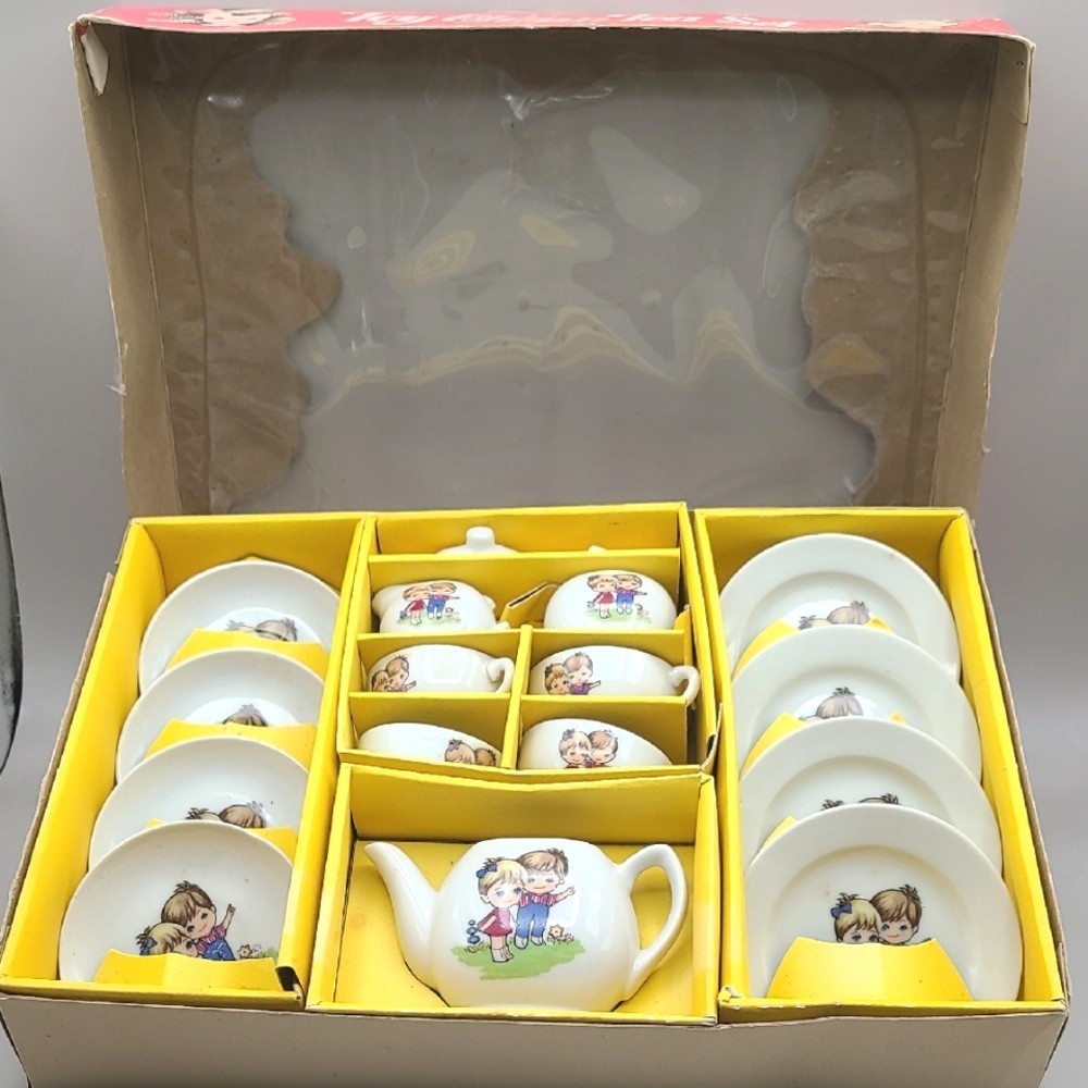Vintage 1960 Toy China Tea Set, 17 Piece Set, Service for 4