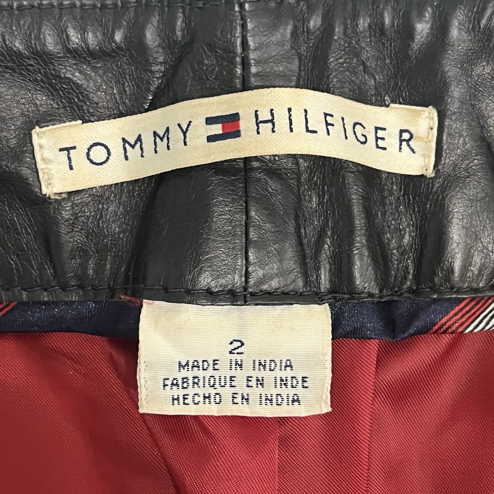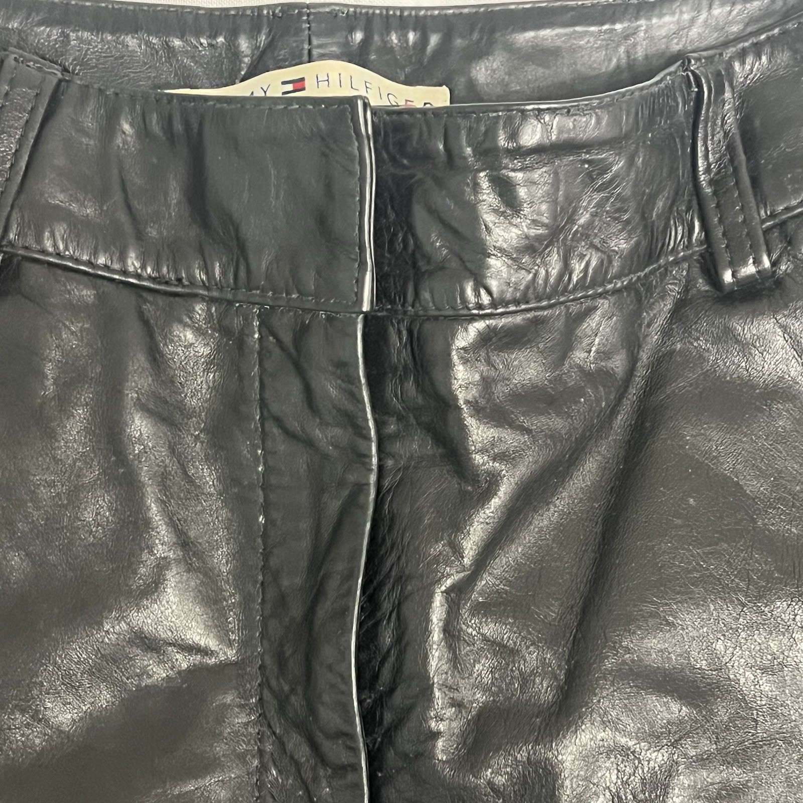 как выглядит Tommy Hilfiger Black Leather pants with red lining size 2. Vintage 2001 фото