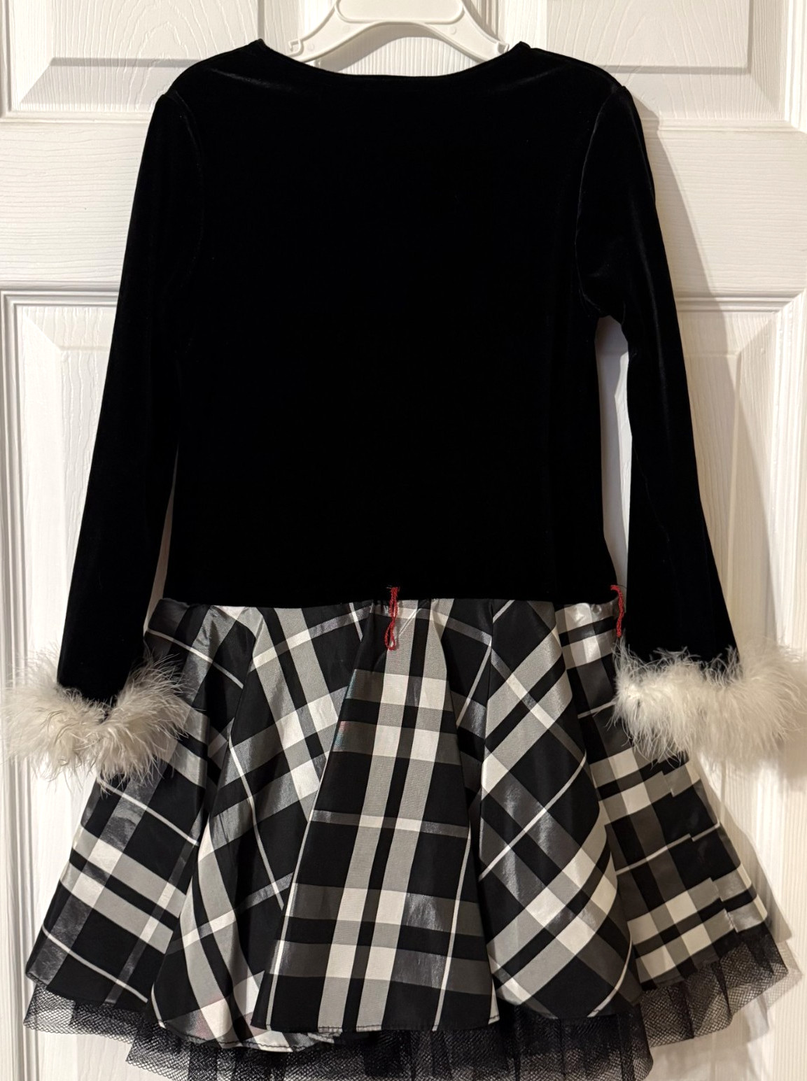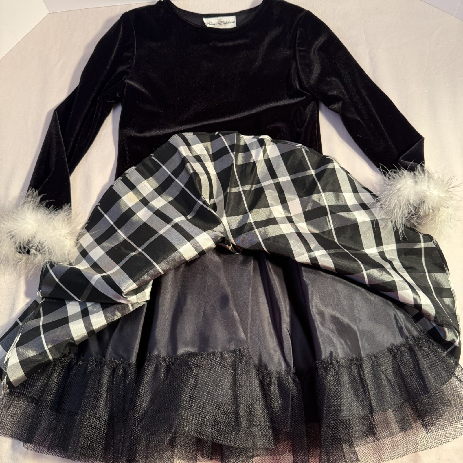 Rare Editions Girls Holiday Dress Sz 5 Black bodice w black white flared skirt