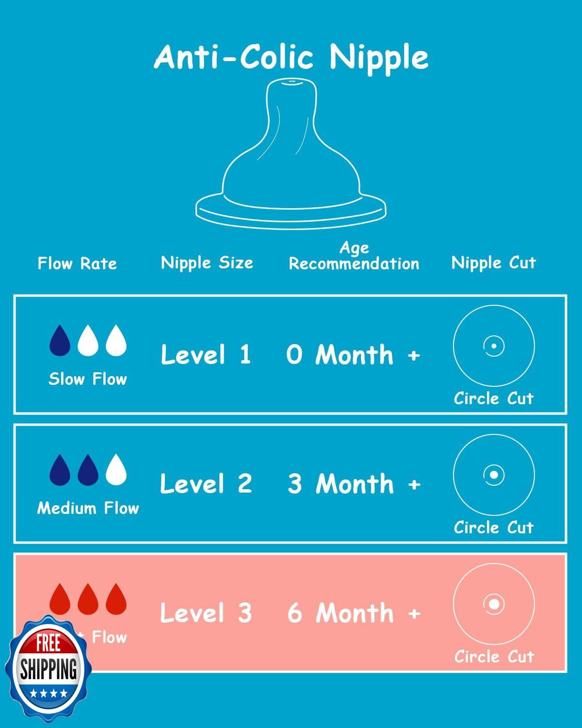 Silicone Nipple for Dr. Brown's Natural Flow Level 3 Wide-Neck Baby Bottle, 6