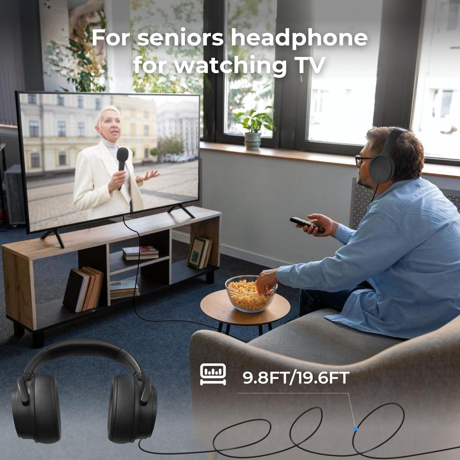 Long Cord Tv Headphones for Seniors with Volume Control Wired Over The Ear He...