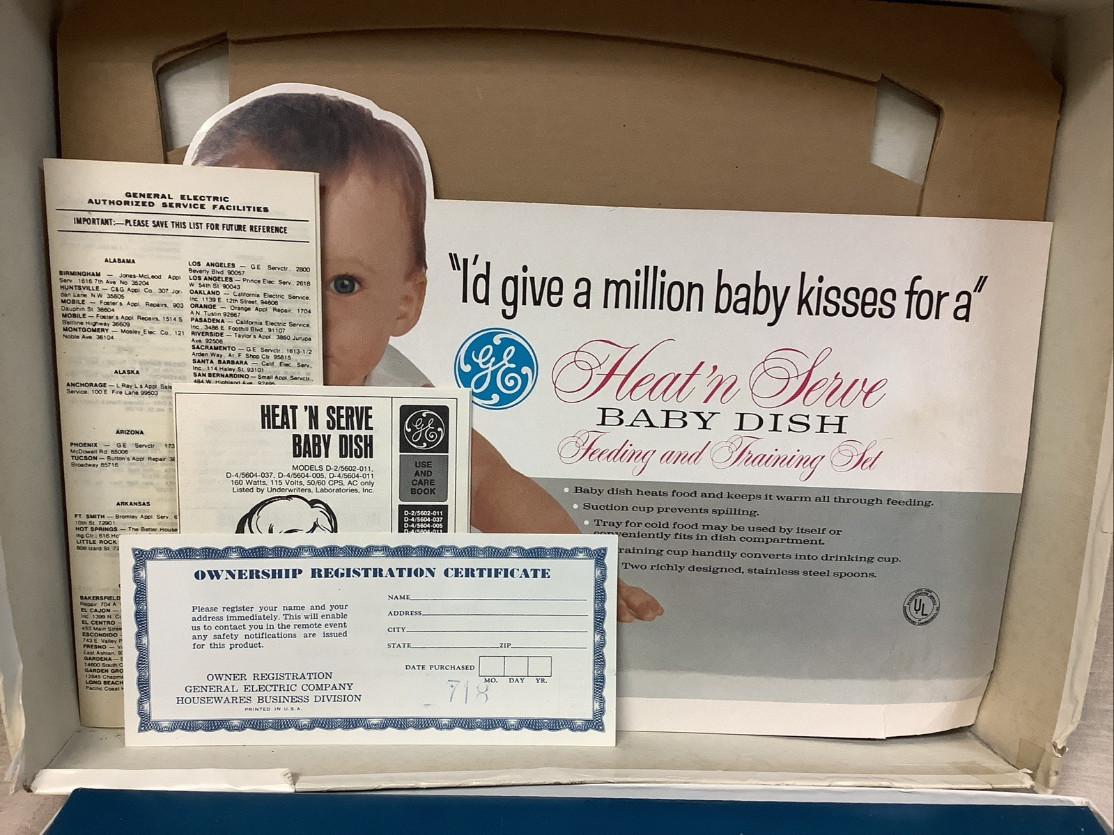 Vtg GE Heat n Serve baby dish set food warmer with box, papers