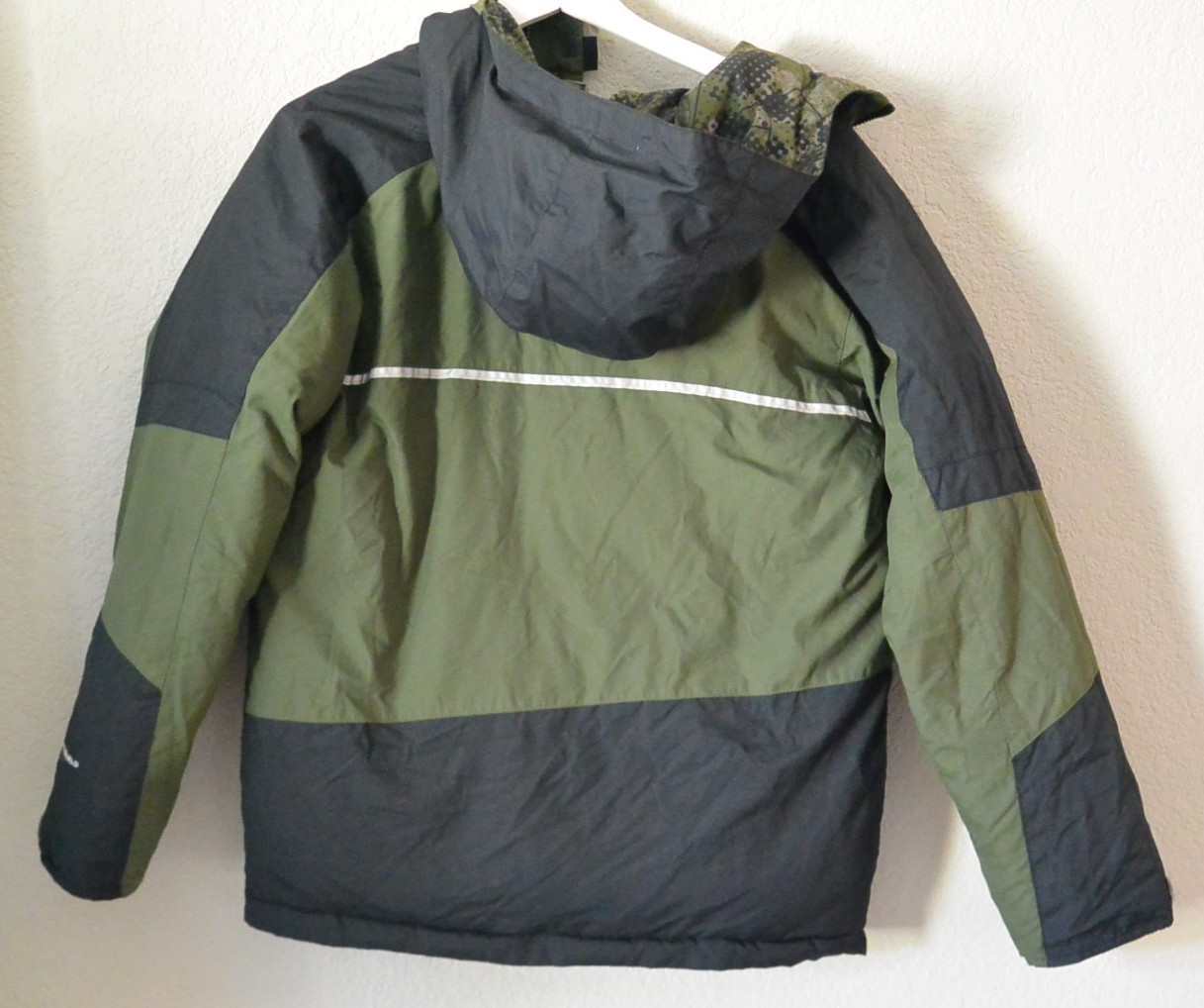 Green Camo COLUMBIA Reversible Hooded Zipper Jacket Youth Boys L Large 14/16