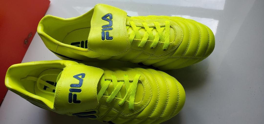 как выглядит Fila Mens MS FORZA T MD LEATHER/SYN Soccer Cleats yellow/Royal Blue US 11.5 фото