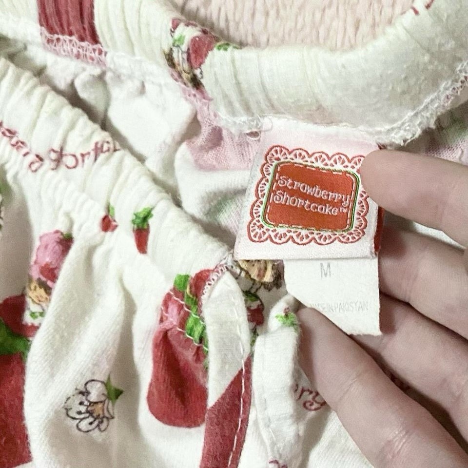 как выглядит Vintage 90s Kids Medium Strawberry Shortcake White Cotton Soft Pajama Pants Y2K фото