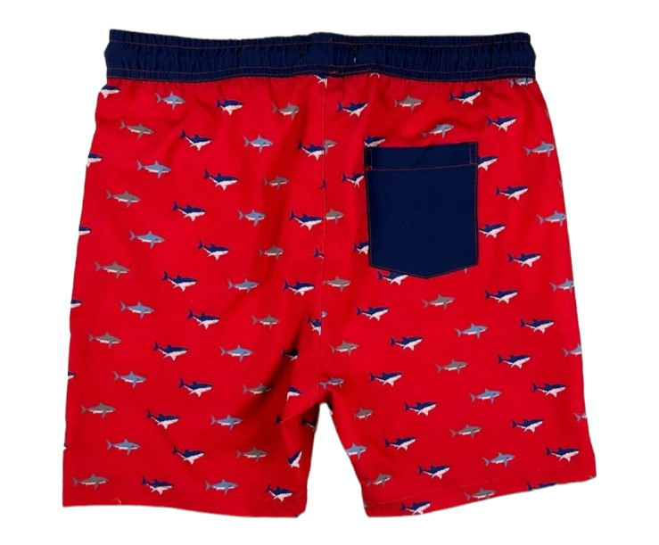 как выглядит Public Record Boys Youth Venice Swim Trunks Size XL Red Shark Print Swimwear фото