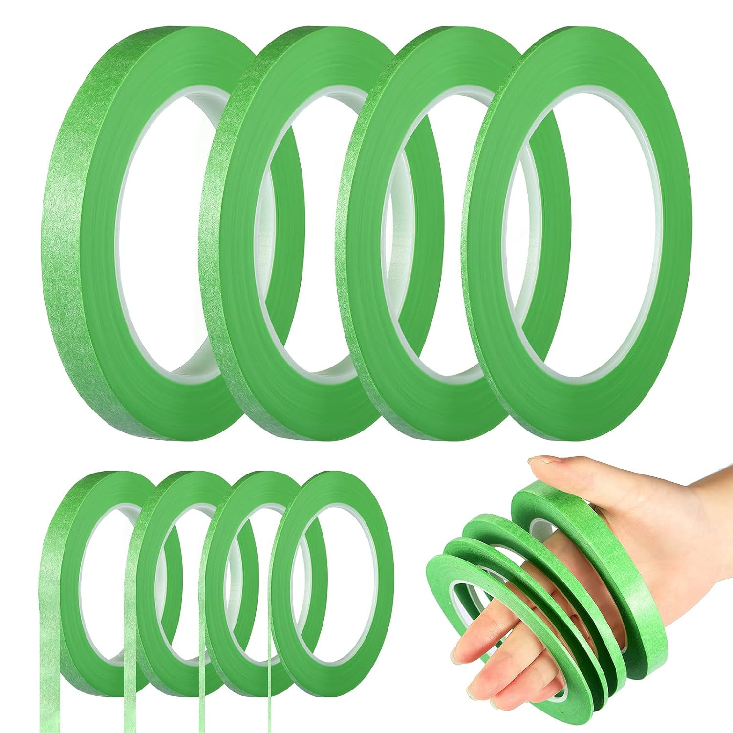 как выглядит 4 Rolls Pinstripe Tape, Masking Tape in 1/16, 1/8, 1/4 and 1/2 Inch Wide, for Pa фото