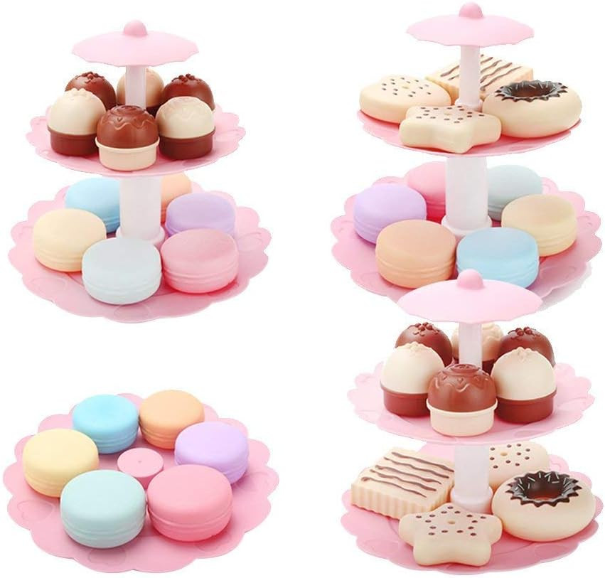 как выглядит Food Pretend Play Toy Set Sweet Treats 3-Tier Colorful Cookies Desserts Tower... фото