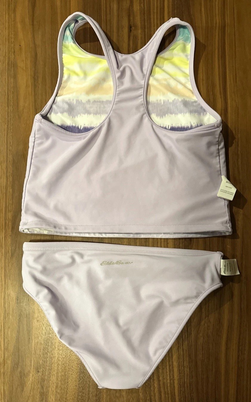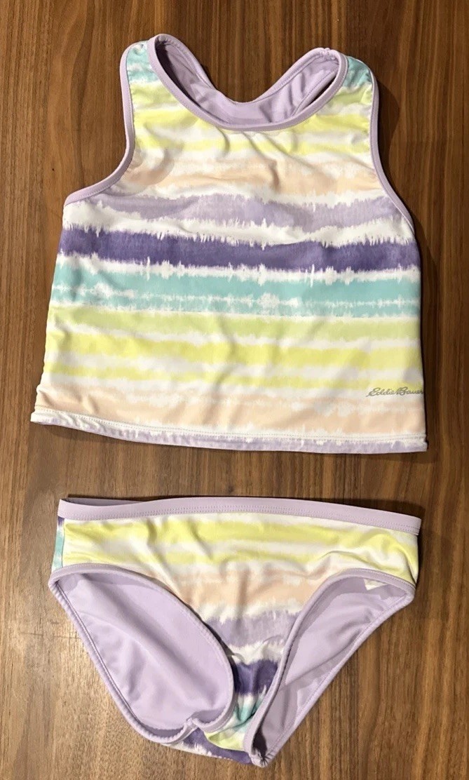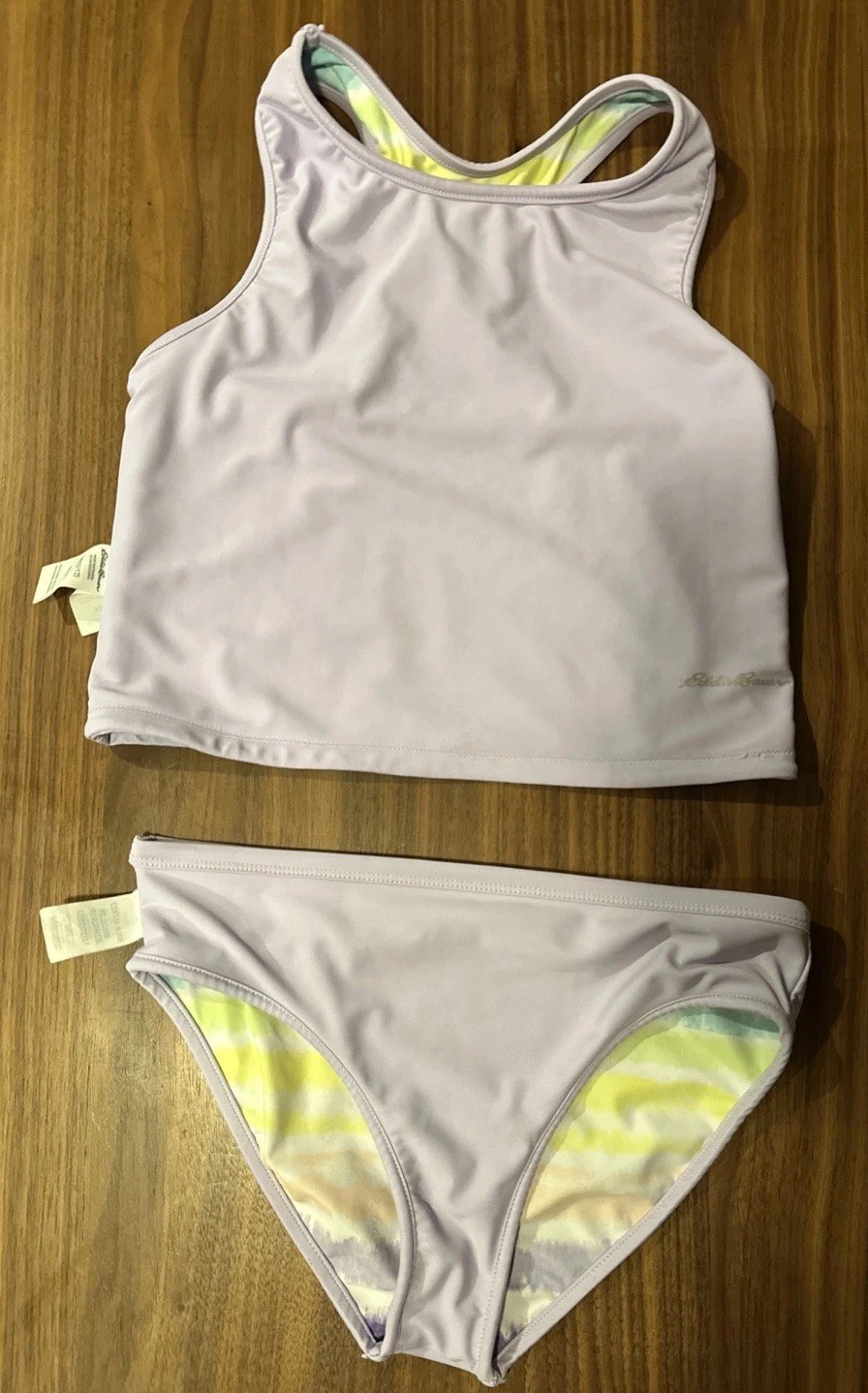 Eddie Bauer Reversible 2pc Swim Set Girls M 10-12 Swimming Tank Vacation Beach