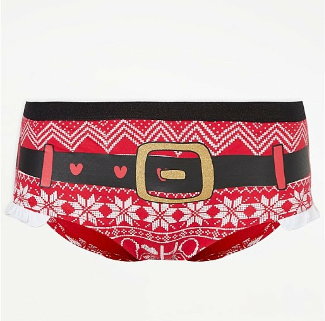 как выглядит Womens Santa Belt Print Christmas Red Short Soft Knickers Brand New фото