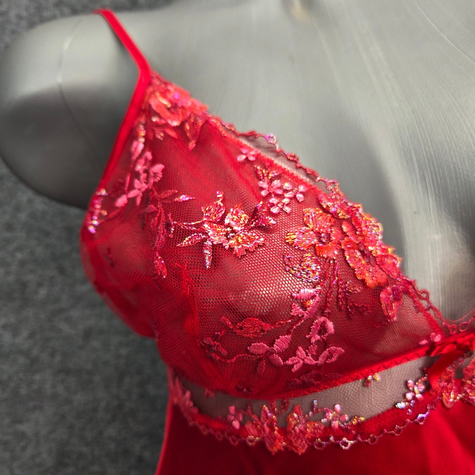 как выглядит Victoria Secret Red Floral Lace Lingerie Chemise Mini Slip Dress Backless V Neck фото