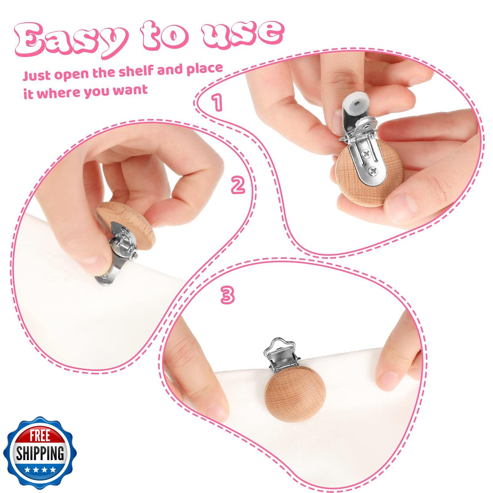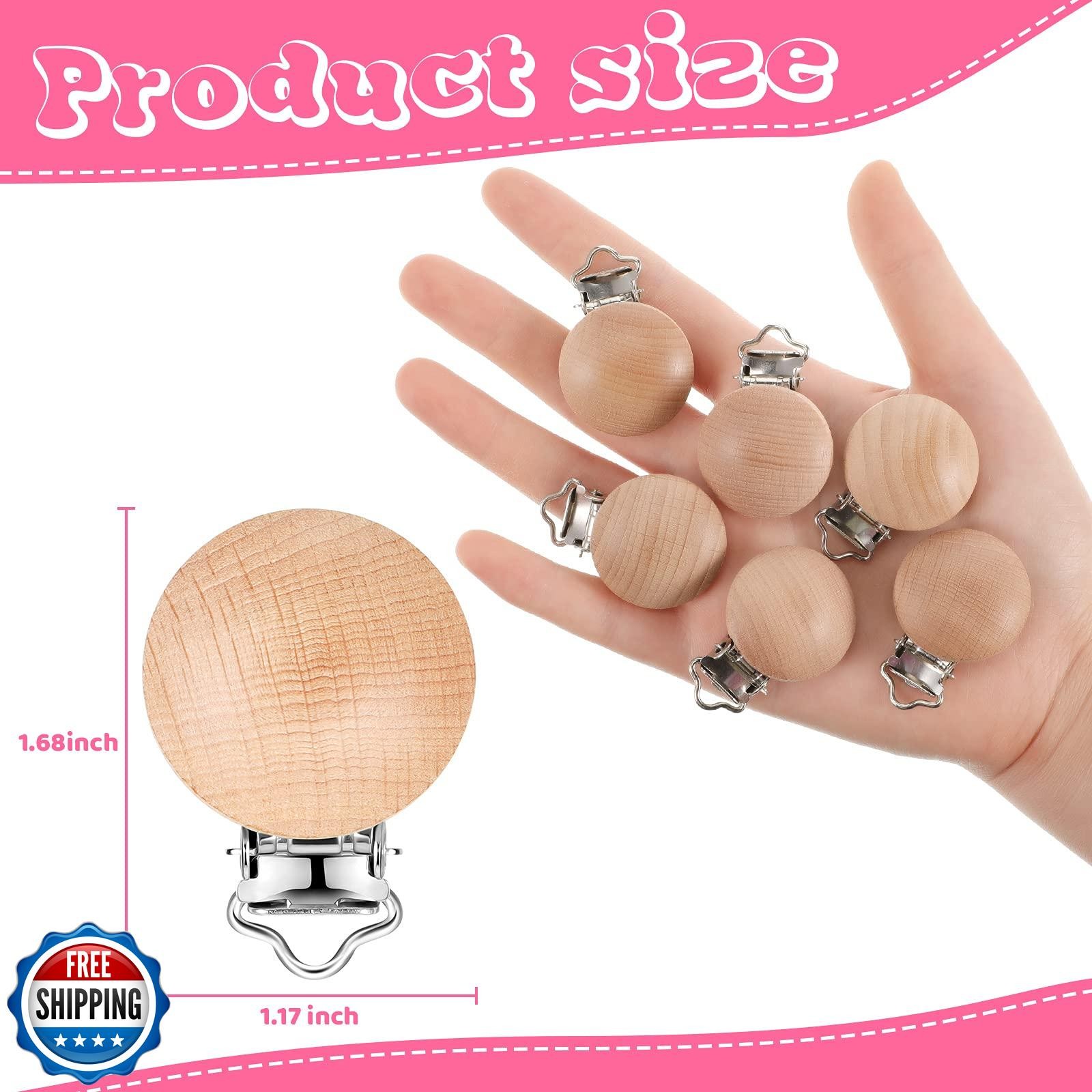30 Pieces Natural Beech Wood Pacifier Clips Teething Grasping Toy Suspender C