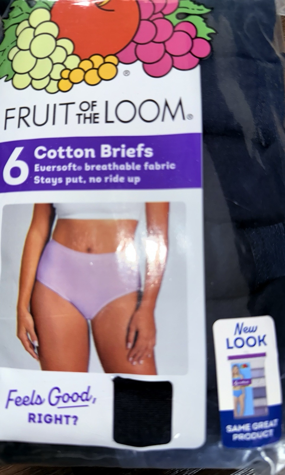 Fruit Of The Loom Womens Brief Underwear Panties 6-Pair 100 Cotton Black 9/2XL