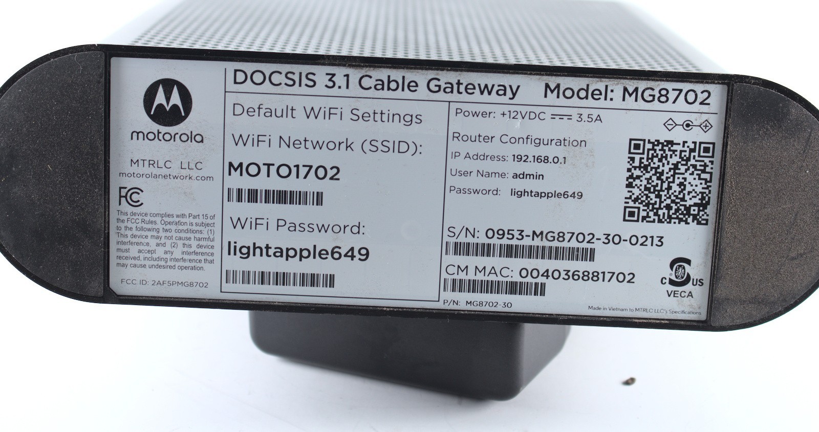 Motorola MG8702 Cable Modem Wi-Fi Router