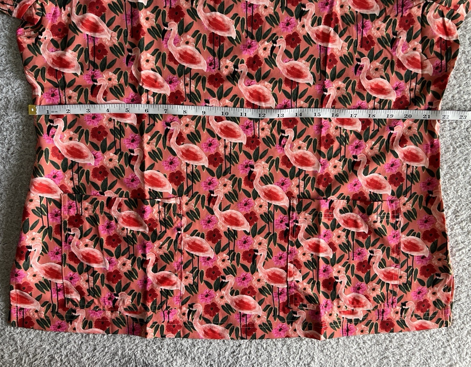Koi Artists Scrub Top Women s Sz XL Orange Flamingo Flowers Nursing Medical