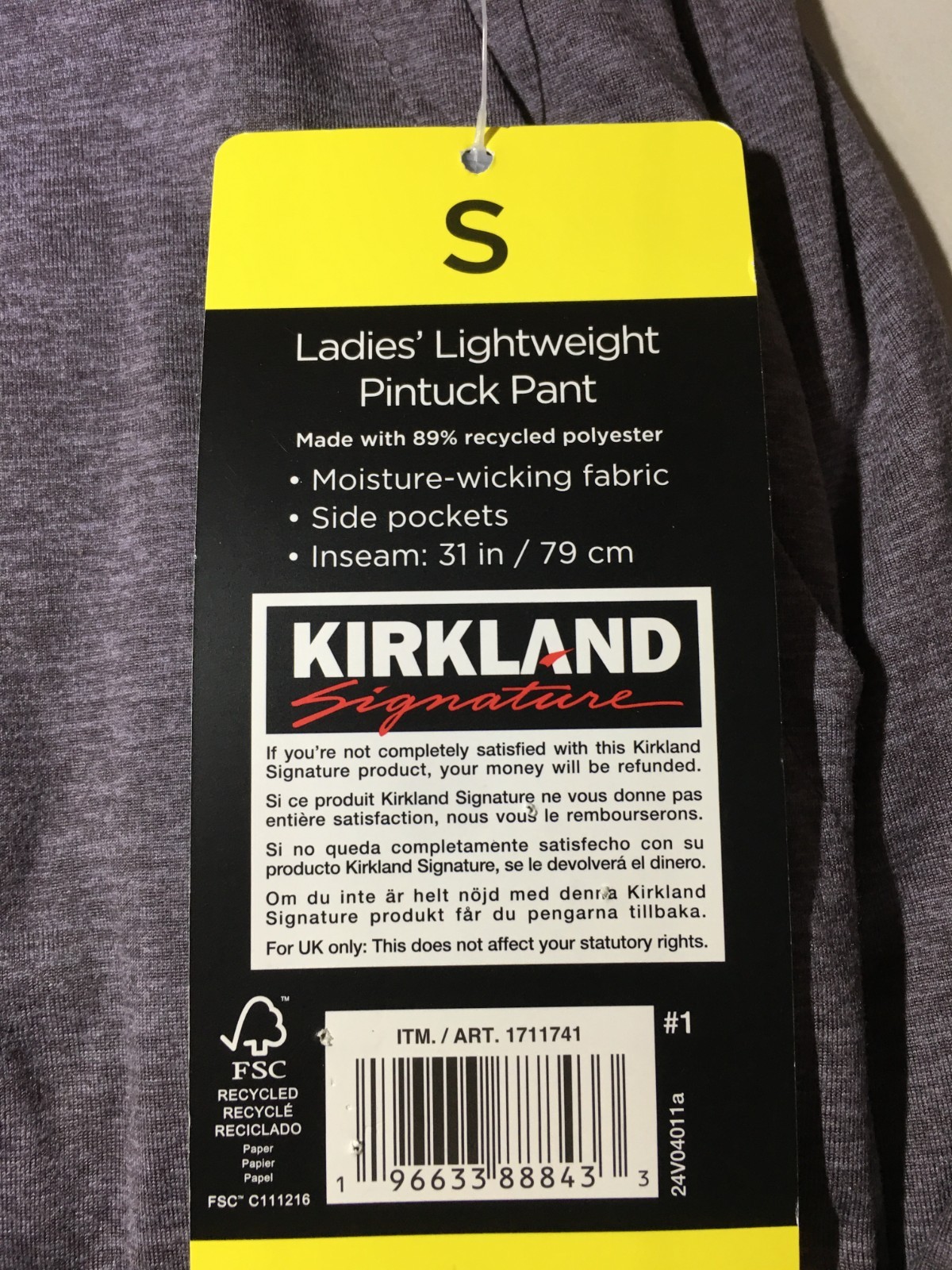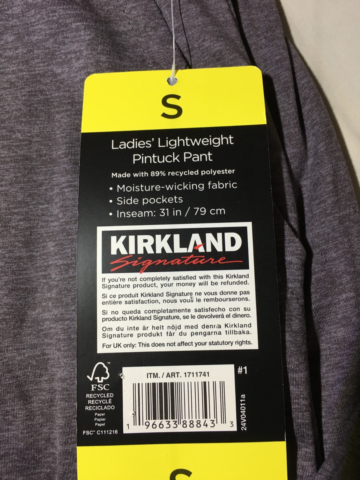 как выглядит Kirkland Signature Womens Lightweight Pintuck Pant, Size Small, Purple, New фото