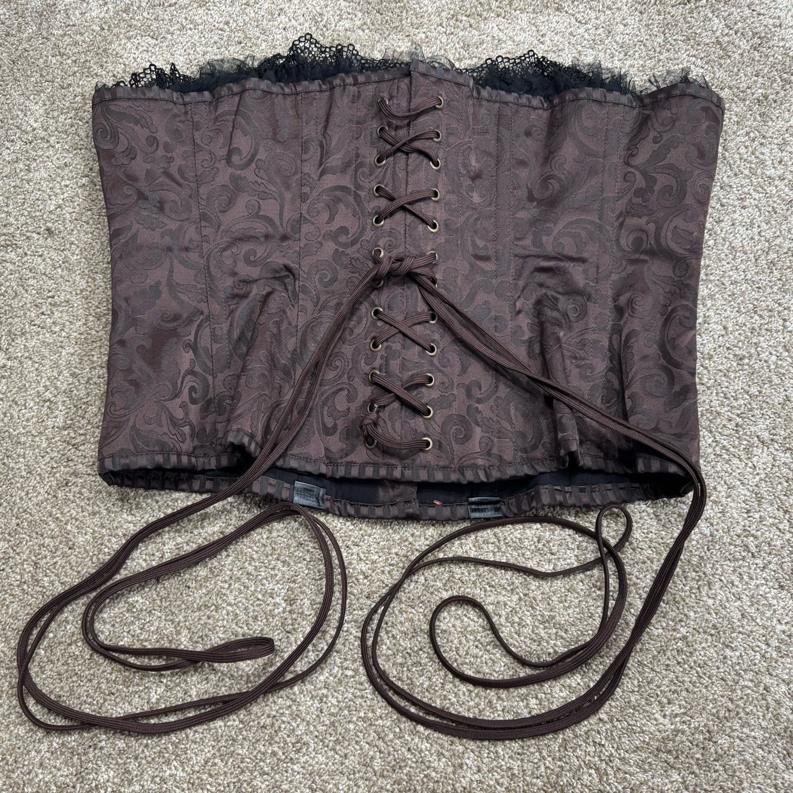Steampunk Corset Waist Trainer Size 38 Underbust Brown Gothic Metal Steel Boning