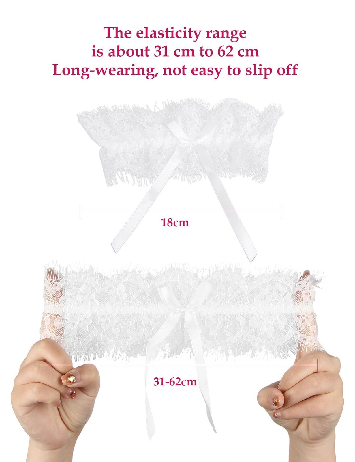Lace Wedding Garter Set for Bride Elastic Leg Garters with Bow for Lingerie