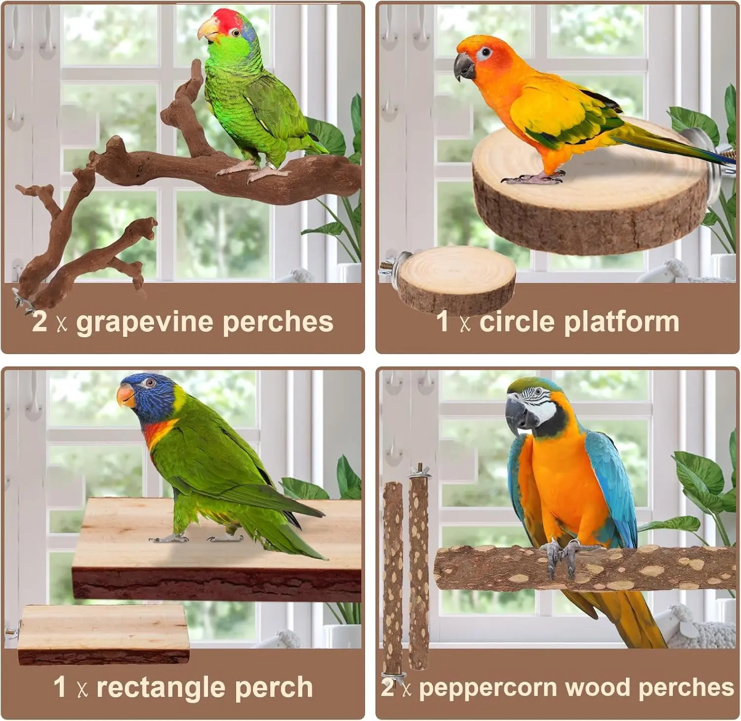 Natural Bird Perch Set 6PC Grapewood Peppercorn Branch Perches, Toys