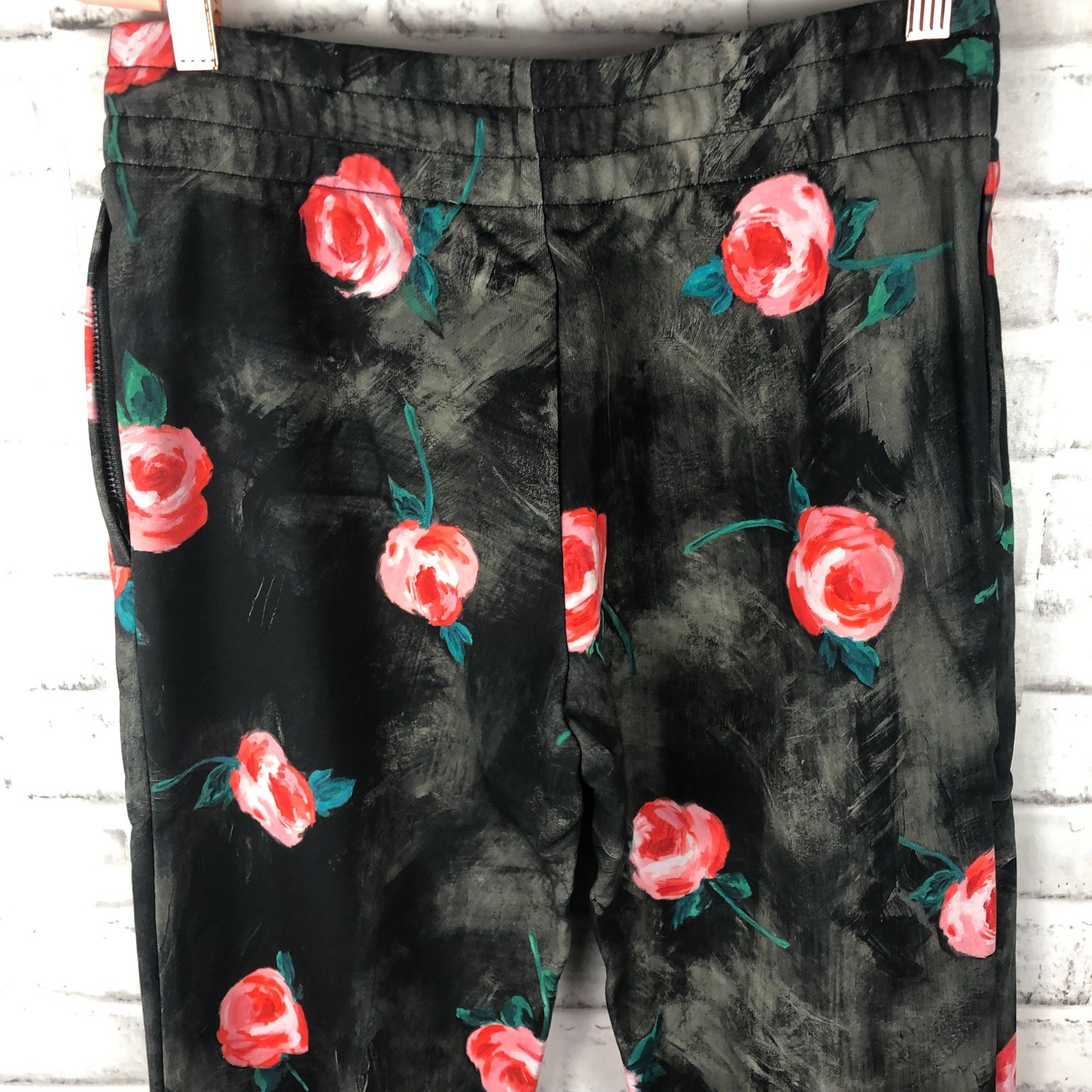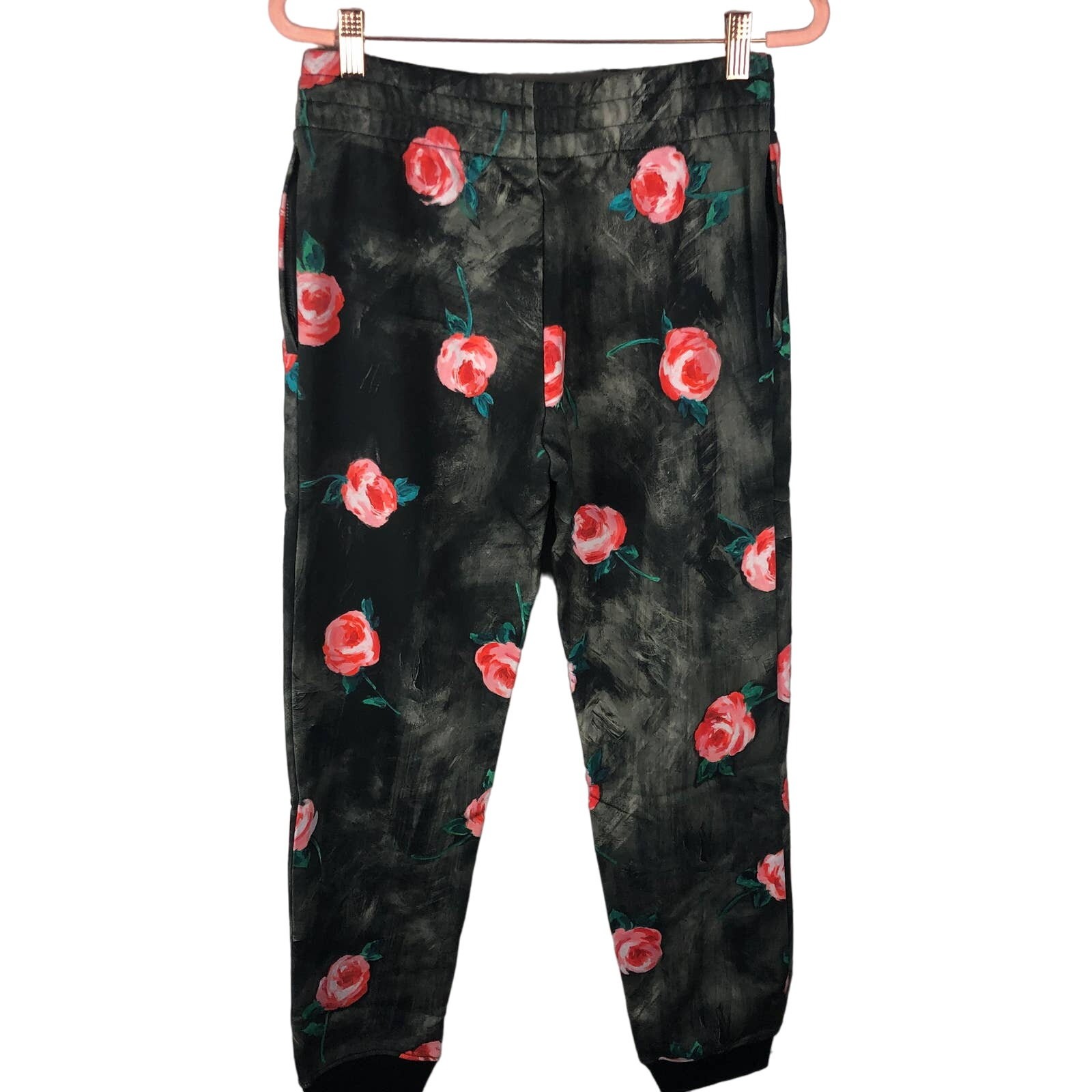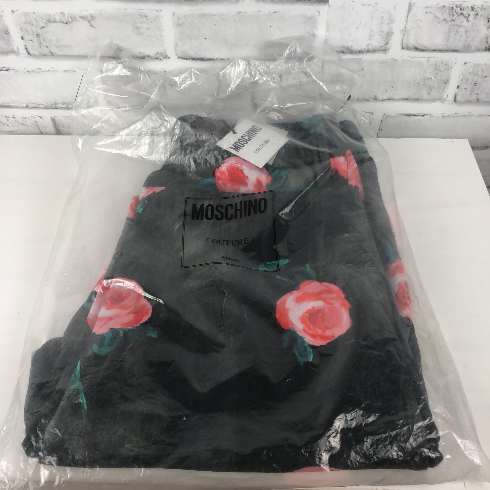Moschino Couture Rose Print Track Pants Trousers Black Multicolor Sz. 6 NEW