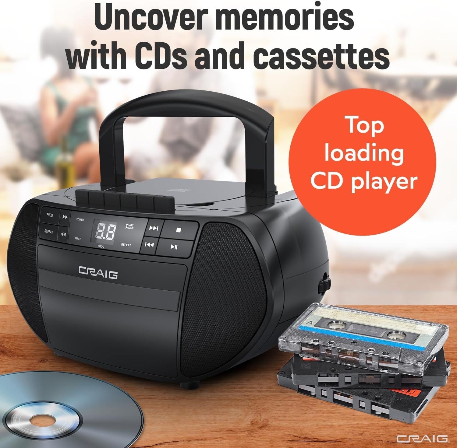 Portable Top-Loading CD Boombox with AM/FM Stereo Radio Cassette Player/Recorder