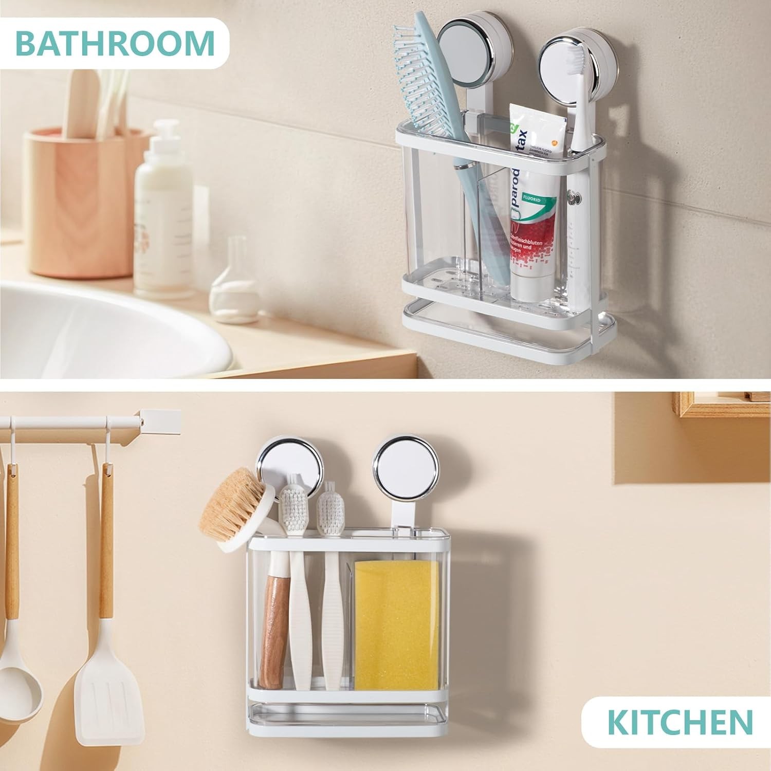 Toothbrush Holders Wall Mounted for Bathrooms, Suction Cup Mount, White