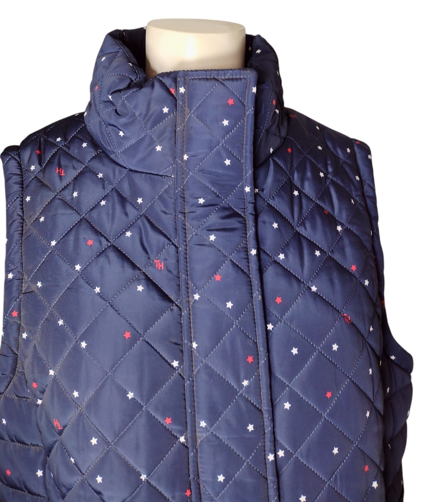 как выглядит Tommy Hilfiger Quilted Stars Puffer Vest Size L Full Zip Preppy Americana фото