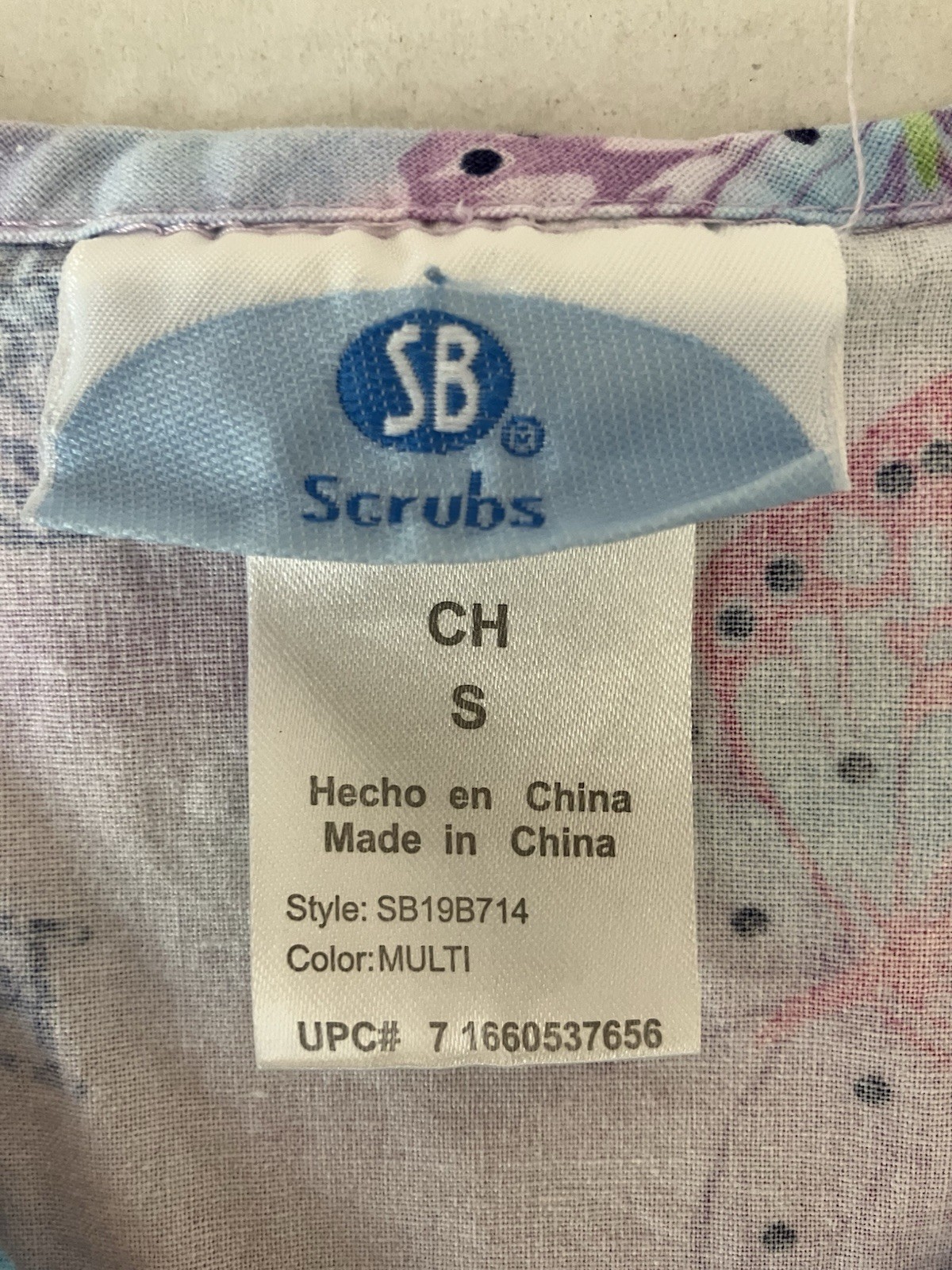 SB Scrubs Scrub Top Women's Small Pink Blue White Butterfly V-Neck SS