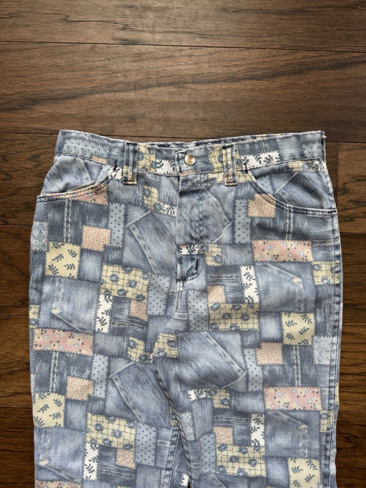 как выглядит Vintage 70 s Maverick Creations Western Bandana Denim Patchwork Bell Bottoms фото