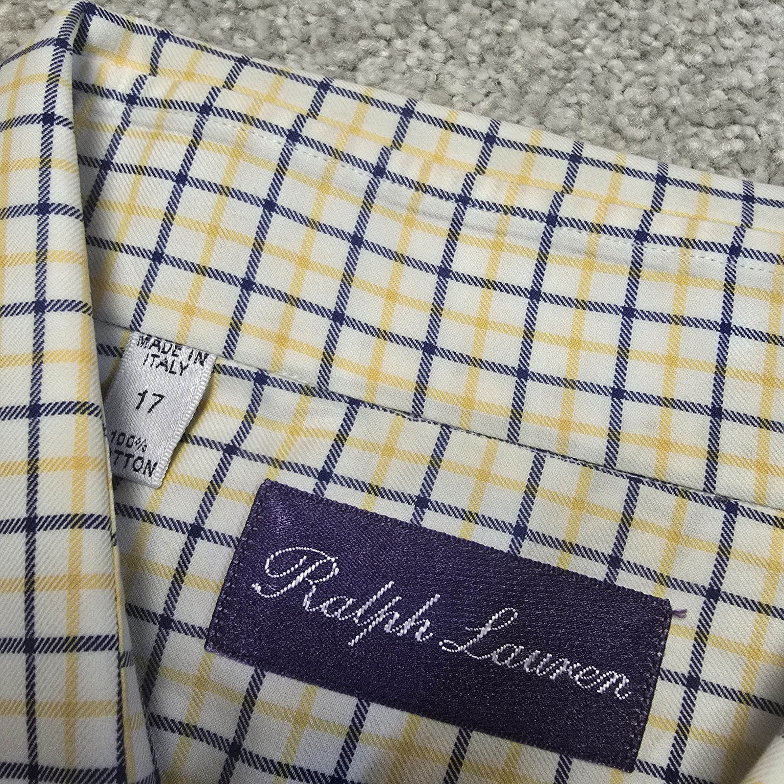 как выглядит Ralph Lauren Purple Label Men s Dress Shirt 17 Made in Italy Yellow Blue Check фото