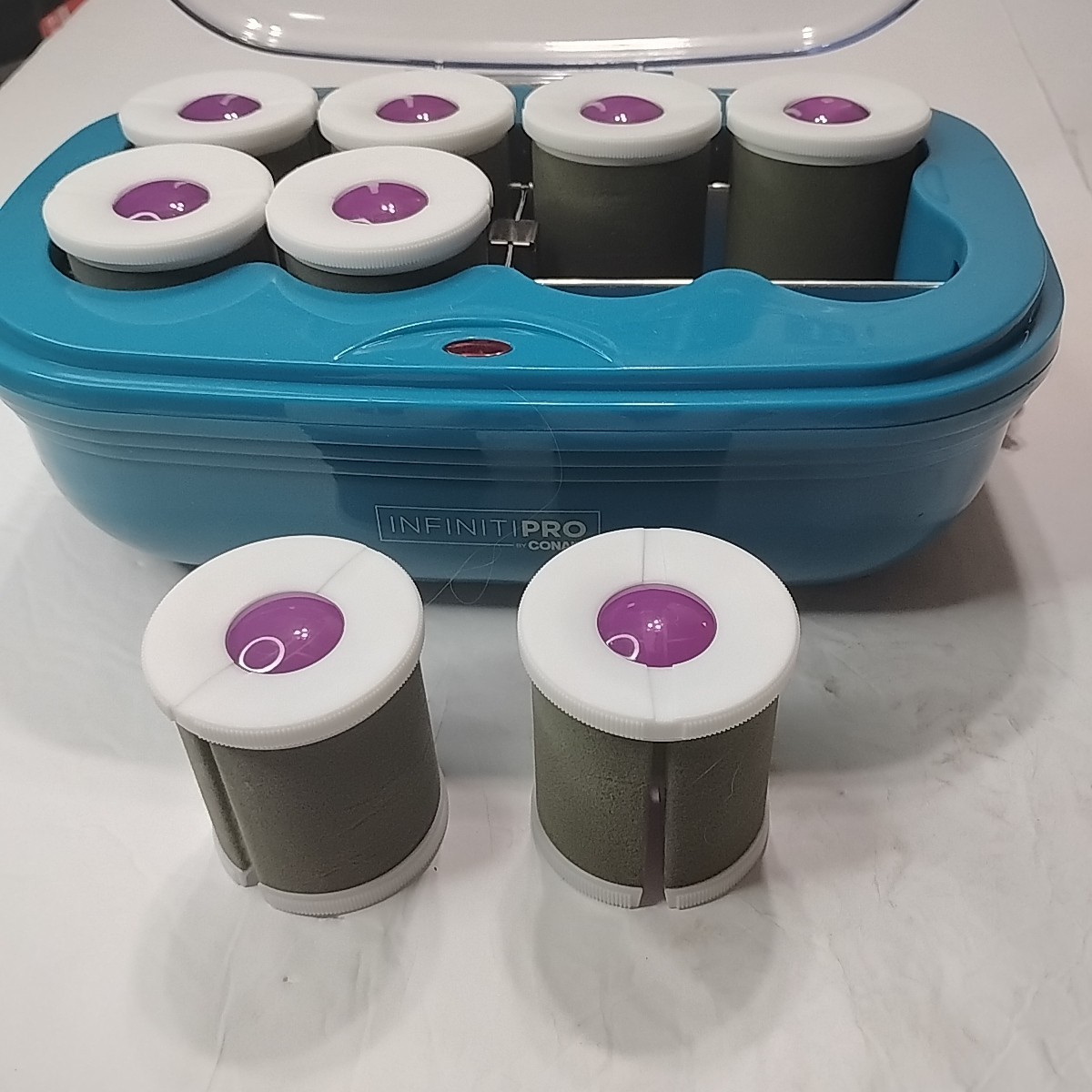 как выглядит Conair Infinity Pro Hot Rollers Model CHV28M Blue Jumbo 2" Rollers Tested Works. фото