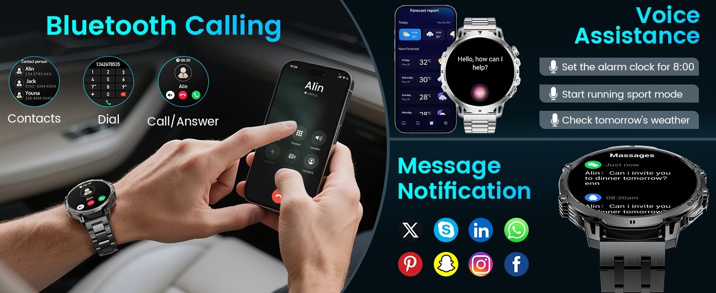 Особенности: Alarm, Water-Resistant, Blood Pressure Monitor, Heart Rate Monitor, Sedentary Reminder, Phone Call, Oxymeter (SpO2), AI Voice Control, Waterproof, HD Touchscreen
