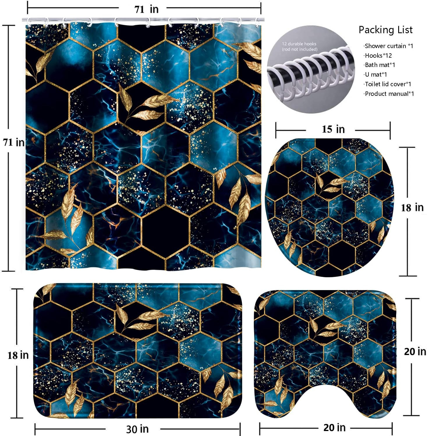4 Pcs Bathroom Shower Curtain Set,Bathroom Sets with Rugs Bath Mat,U Shape and T